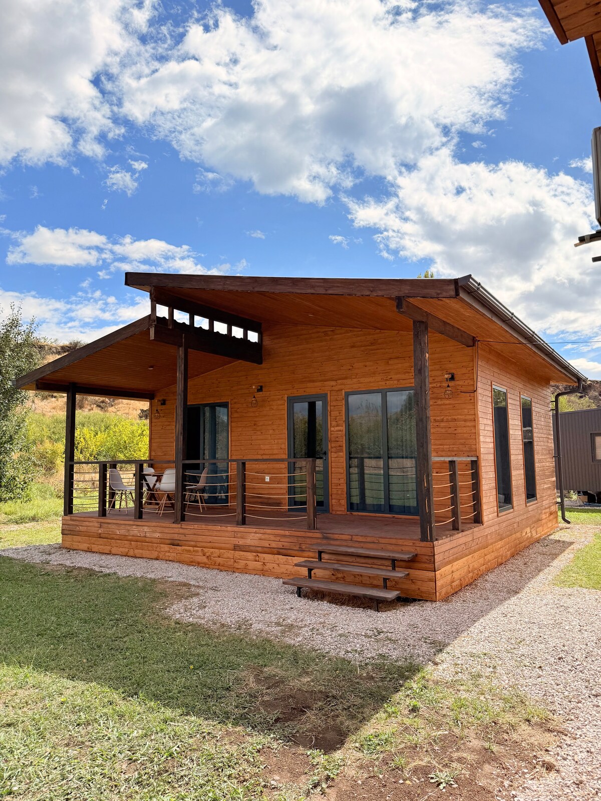 🏡 Parpi Riverside — el refugio ideal para parejas, familias y amigos que buscan escapar del ruido urbano. Acogedoras cabañas de madera junto al río, aire fresco, naturaleza tranquila y un jardín con barbacoa para tardes cálidas. A solo 25 minutos de Ereván: desconéctate, disfruta de un fin de semana romántico o una escapada familiar cómoda en plena naturaleza.