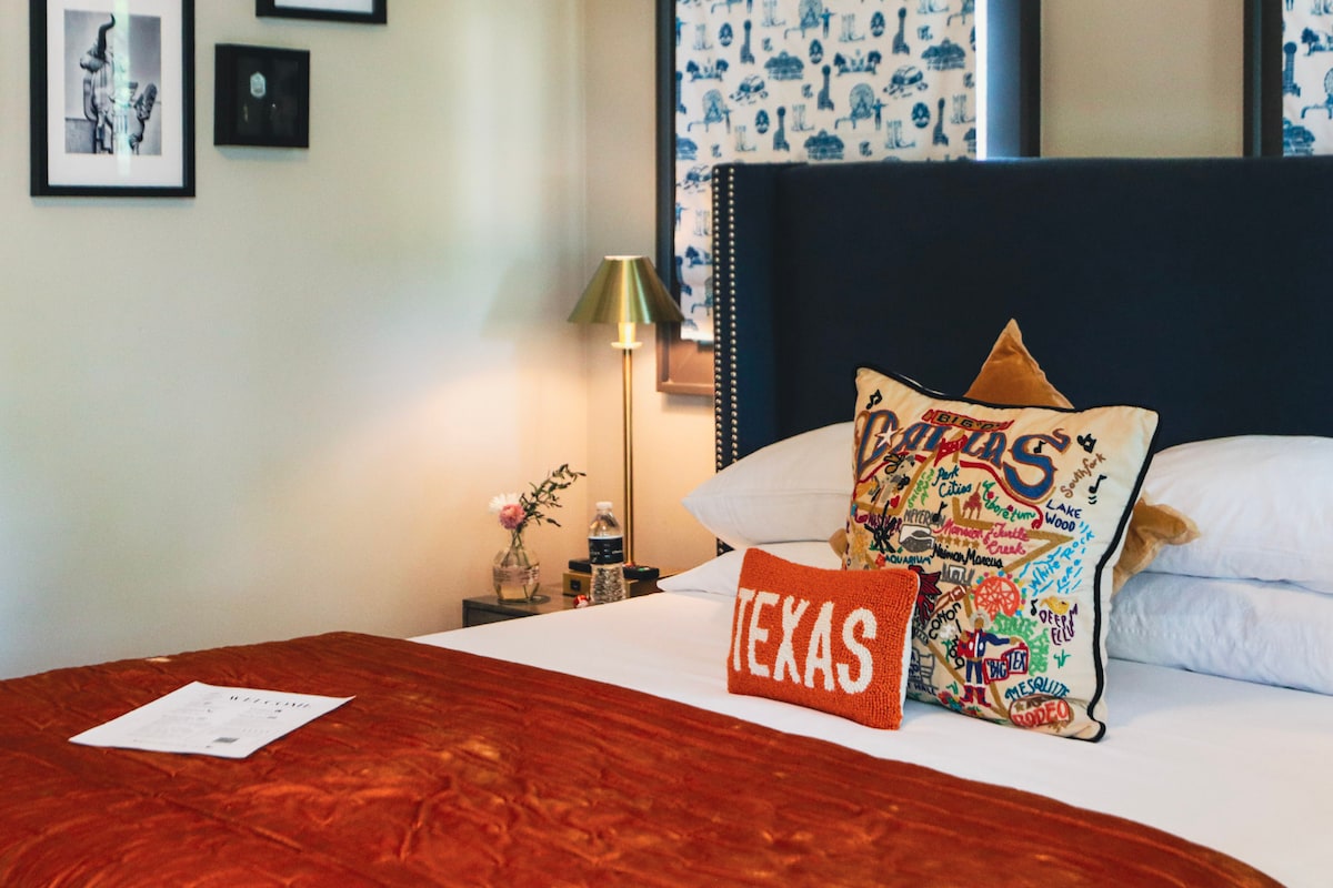 ¿Buscás un bed and breakfast boutique en Dallas que combine tu amor por lo kitsch y la historia con un ambiente y servicios boutique modernos? Te damos la bienvenida a The Gaston. La Dentzel, nuestra suite más acogedora, se inspira en la famosa Feria Estatal de Texas, con murales personalizados, recuerdos auténticos y un balcón privado con un asiento de noria.