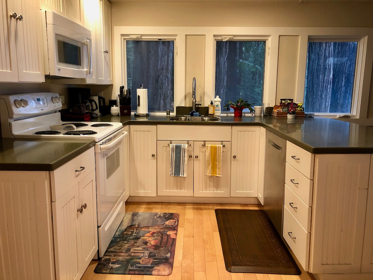 Inhala. Exhala. Relájate en este acogedor y romántico refugio de huéspedes ubicado entre las secuoyas de las montañas de Santa Cruz, con vistas a la bahía y convenientemente ubicado cerca del famoso restaurante Alice's en Skyline Blvd en Woodside. La propiedad cerrada de 1 acre tiene un amplio aparcamiento y privacidad. Acurrúcate junto a la chimenea de leña, prepara comidas en la cocina de tamaño completo y disfruta de las vistas de las majestuosas secuoyas justo fuera de las ventanas con vistas a la bahía que se asoman a través de los árboles.