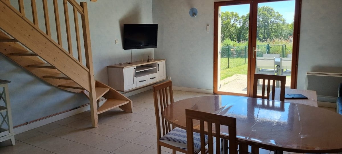 Pequeña casa nueva, independiente. 60 m2. Jardín de flores y árboles (cerca del terreno de los propietarios, pero con privacidad garantizada) Dos terrazas. Entorno campestre. Vegetación, luz, tranquilidad. Entre el océano (a 500 metros en línea recta) y el golfo. Cerca del pueblo, playas, rutas de senderismo costeras, circuito de bicicletas. Ideal para conocer la península de Rhuys, el golfo y sus islas. Cocina equipada. Rincones: comedor, sala de estar, TV - lectura. Dos partes para dormir ( separadas ) en el altillo ( ver fotos ).