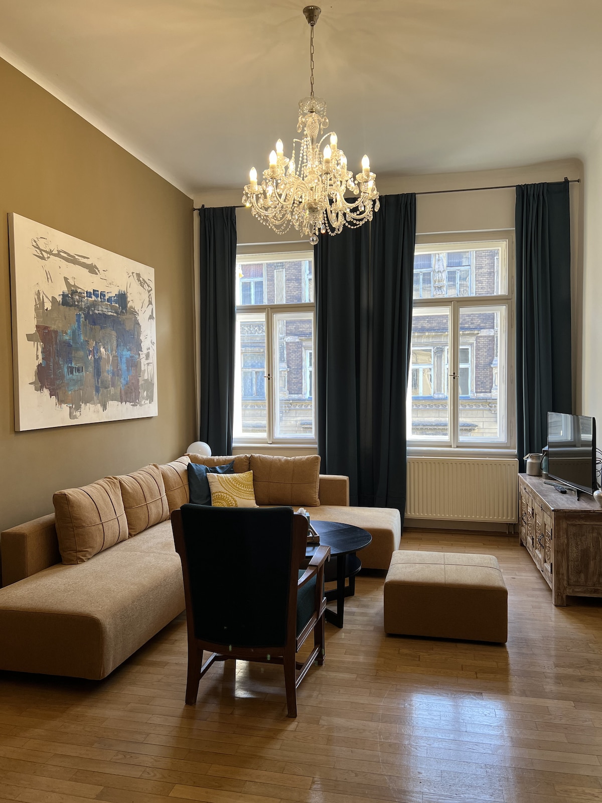 A new, luxury, one bedroom apartment in recently renovated historical building in the old center of Prague. The apt. has very modern interior combined with classic wooden elements. There's a quiet bedroom with double bed and a high quality mattress, a fully equipped kitchen, a comfortable living room with a sofa bed and a separate bathroom. Fast internet. The apt. is perfect for two but it comfortably hosts up to four guests. The building has 24/7 receptionist and security on duty.