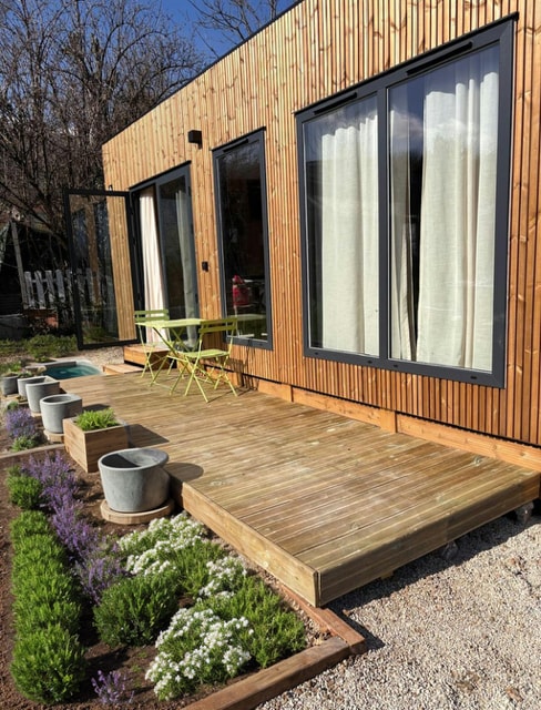 Charmante Tiny de 20m2 neuve 🤩 Idéalement meublée avec goût et praticité, à 20 minutes de Genève composée: 🧑🍳Un espace cuisine entièrement équipé avec tv 🚿Une salle de douche à l’italienne 🛏️Une chambre séparée avec un lit 140, avec tv Une agréable vue sur le jardin pour profiter d’un environnement calme et verdoyant. Le logement n’accepte pas d’animaux de compagnie et convient idéalement à une ou deux personnes. 🚙 Stationnement : gratuit à proximité, sur un parking public.