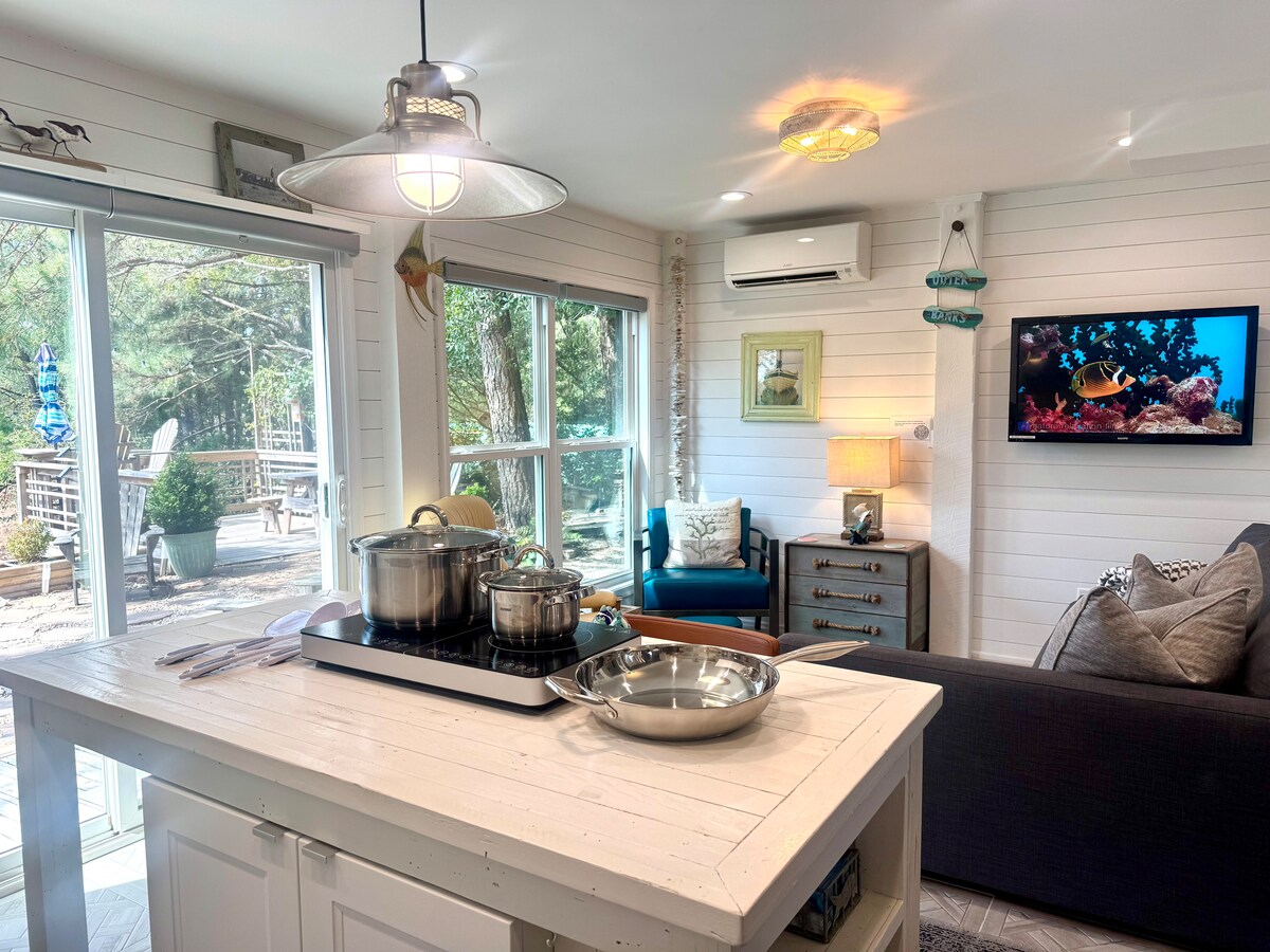 «Salt Suite Cottage» Relájate y desconecta en este alojamiento tranquilo y elegante. Nuestra pequeña y única casa está perfectamente situada para mostrar los diversos paisajes que ofrece esta zona. La casa de campo te permite descansar la cabeza en la tranquila zona boscosa de Kitty Hawk Village después de pasar un día ajetreado en la playa. Esta nueva construcción es de unos 550 pies cuadrados de espacio habitable privado y espacioso con jacuzzi y patio con vistas a la vegetación detrás de la propiedad. ¡Es un lujo! *Solo 2 huéspedes, no se admiten visitas.