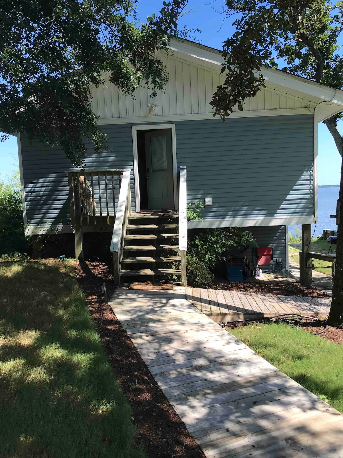 Ubicada en las dunas boscosas de la isla Roanoke, Crews Cottage está unida a la casa principal de los propietarios a través de un corredor y un porche protegido. ¡Sin escalones! (Consulta la sección Accesibilidad). Aproximadamente 1000 pies cuadrados de tamaño total, cuenta con un gran dormitorio privado (cama queen) con baño/ducha. La gran habitación tiene un sofá cama extraíble (completo) y un sofá cama de dos plazas (doble). La cocina pequeña cuenta con nevera de tamaño completo, horno microondas de convección, tostadora y cafetera. Lo sentimos, no se admiten mascotas.