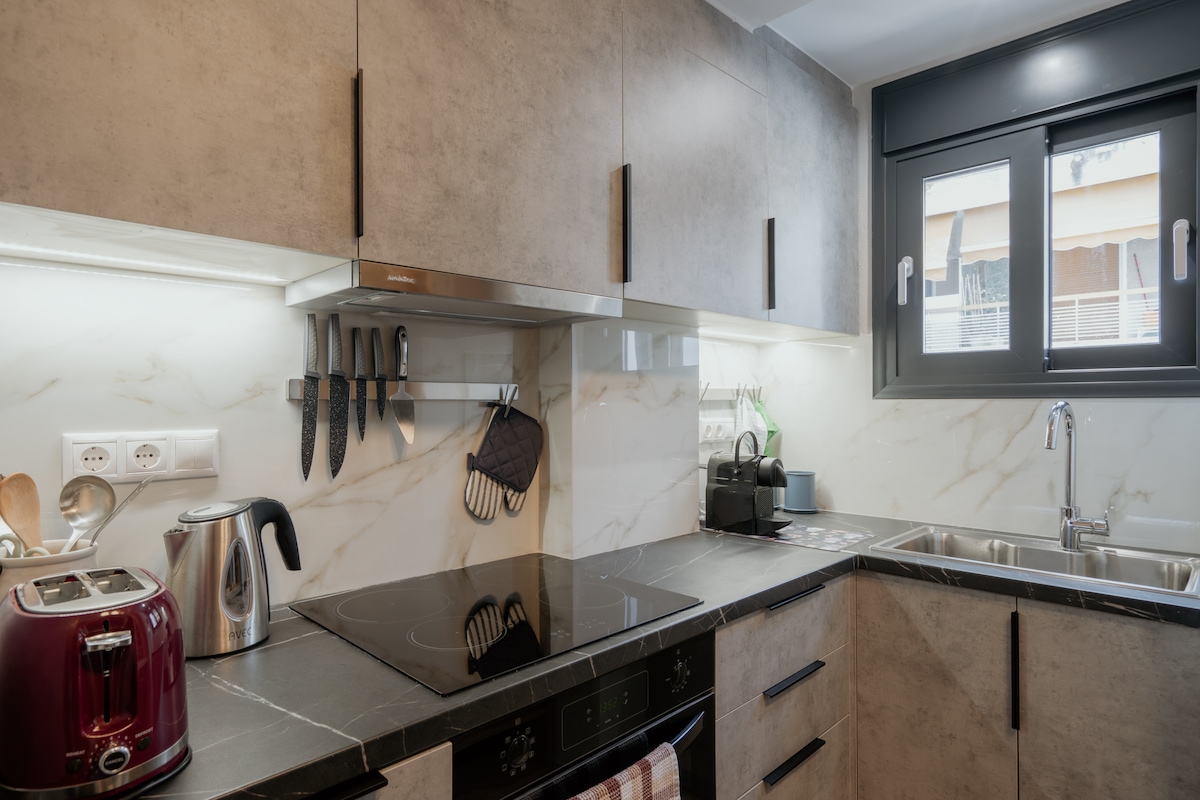 Alojamiento familiar moderno de 2 dormitorios y 2 baños | ¡A poca distancia a pie de la Acrópolis!