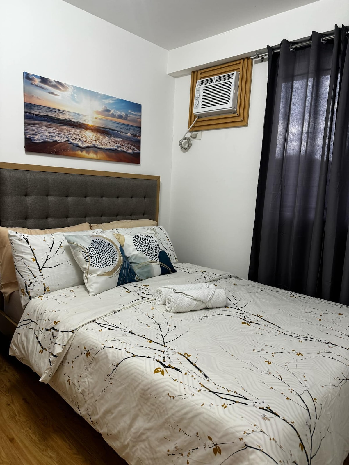 Enjoy a comfortable experience in this delightful 1 bedroom suite (corner unit, ground floor)that provides a perfect blend of elegance,comfort and convenience. Nestled in a gated community with 24 hour security that has the following amenities - swimming pool, kids playground, basketball court and clubhouse. Inclusions 👇 FREE Wifi Comfy bed Flat screen TV with NETFLIX Rice Cooker Refrigerator Induction Cooker Automatic Washing Machine Free drinking Water Microwave Electric Kettle Kitchenwares