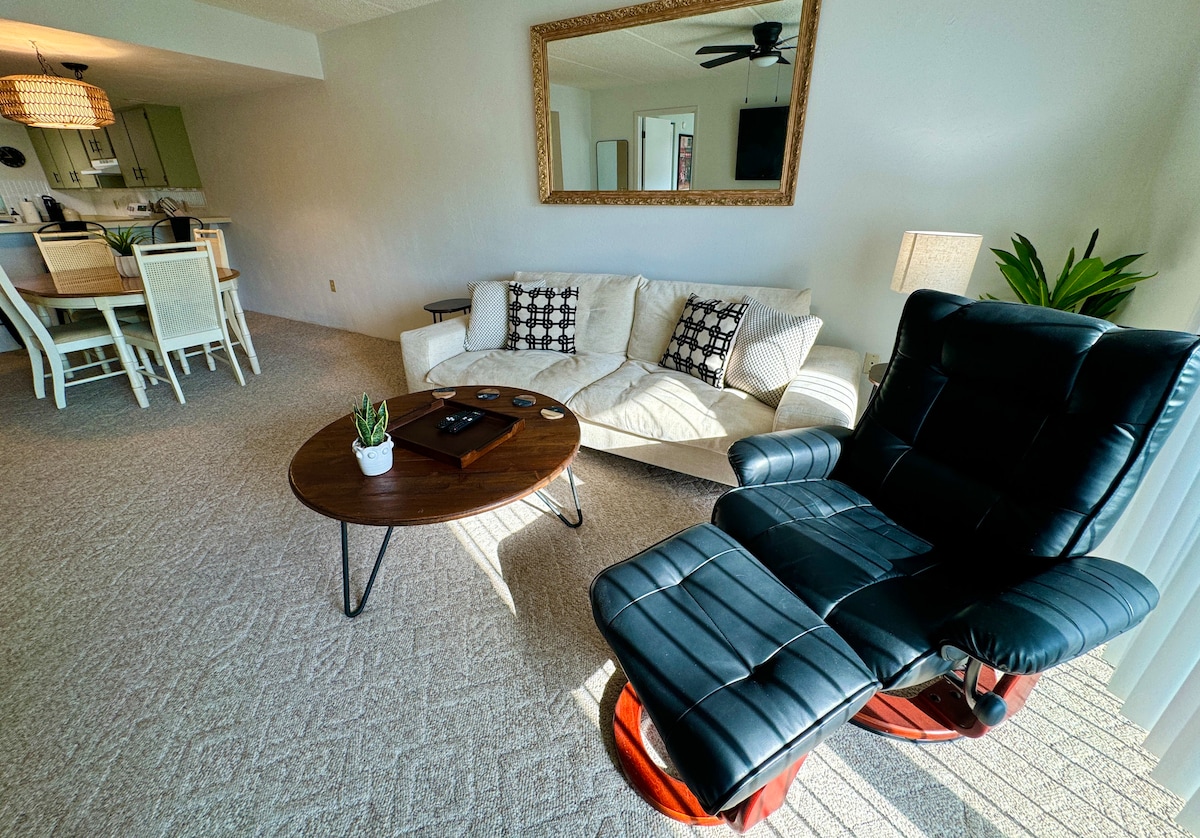 Just steps from the beach, this bright and spacious 2-bedroom, 2-bath direct oceanfront condo is your perfect coastal getaway. Wake up to panoramic ocean views, sip coffee on the large private balcony, and fall asleep to the sound of the waves. The condo is fully equipped including beach chairs and gear, washer and dryer, ultra-fast Wi-Fi, and free parking. Enjoy a newly renovated oceanfront pool, comfortable beds for up to six guests, and three large smart TVs for streaming your favorite shows.