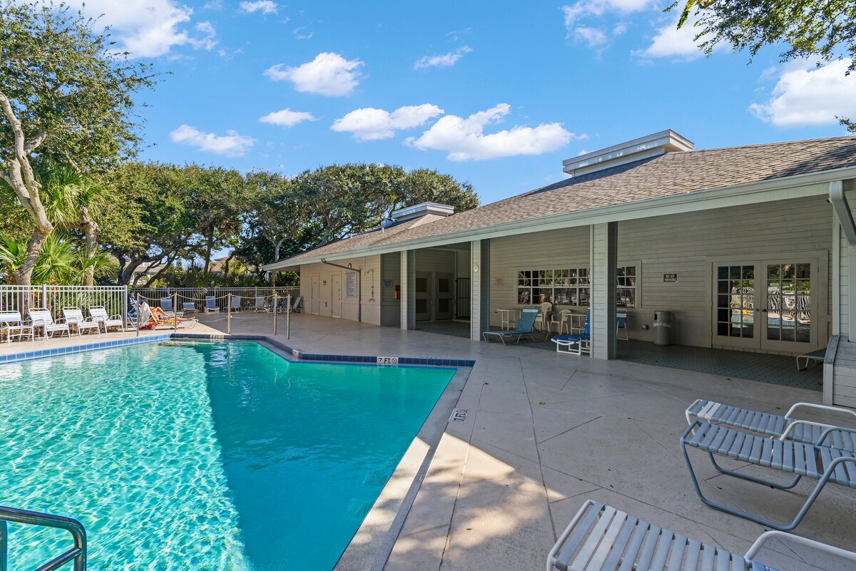 ¡Sumérgete en el mar o en la piscina en minutos! Este apartamento bellamente renovado, a pasos de la playa de New Smyrna, es perfecto para estancias de días o semanas. En un complejo turístico, ofrece todas las comodidades modernas para una estancia relajante. Incluimos toallas, sillas y otros artículos de playa. El balcón cerrado es ideal para relajarse y cenar al aire libre sin perder la privacidad. ¡Explora este oasis y regresa con las pilas completamente recargadas!