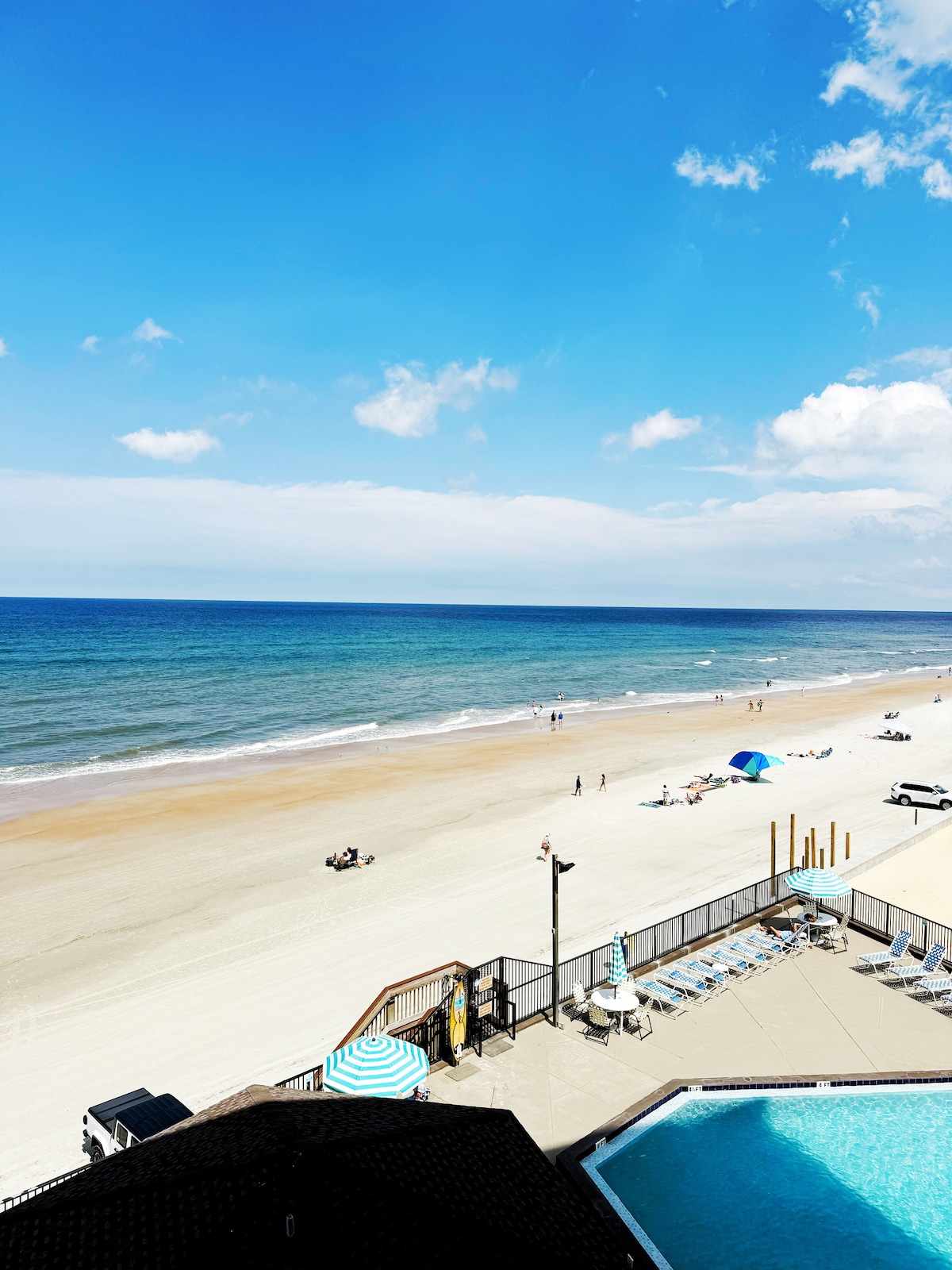 Relájate en nuestro departamento céntrico, a pocos pasos de la playa, el paseo marítimo, el muelle y la animada calle principal de Daytona. Ubicada en el tercer piso, la unidad ofrece vistas al mar desde un balcón privado. Disfrutá de acceso exclusivo a la playa, un lugar de estacionamiento reservado y servicios que incluyen un bar Tiki con comida deliciosa, bebidas refrescantes y música en vivo, todo a solo unos pasos de la arena. ¿Tienes alguna pregunta? No dudes en ponerte en contacto con nosotros. ¡Estaremos encantados de ayudarte!