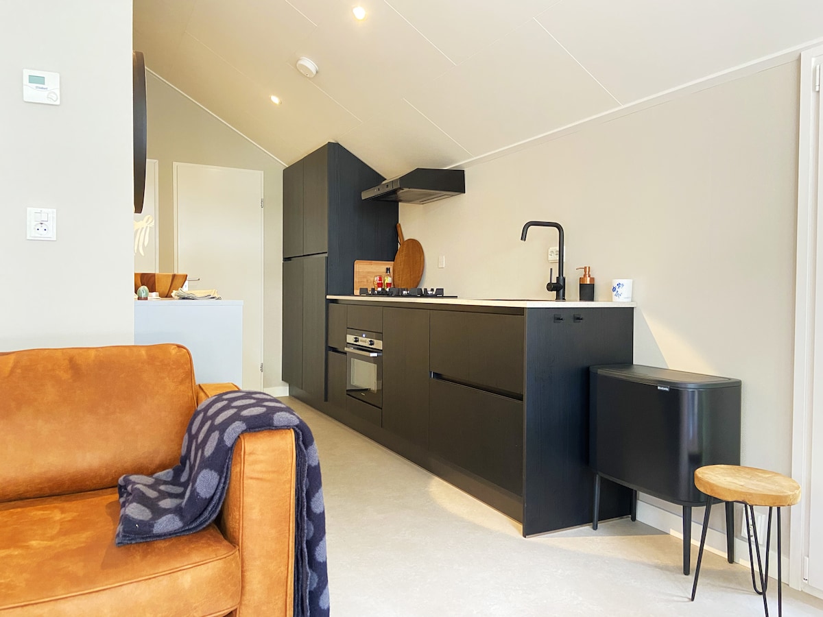 Alójate en una minicasa decorada de lujo y atractivo en el parque de deportes acuáticos de Koggeplaet. Ideal para los amantes de la paz y del deporte acuático. El parque está situado en el lago más grande de Frisia. La minicasa está en un precioso terreno de esquina y tiene todas las comodidades. Por ejemplo, el Tiny House tiene un amplio cuarto de baño con cabina de ducha y WC, una cocina americana con nevera y 2 placas eléctricas.