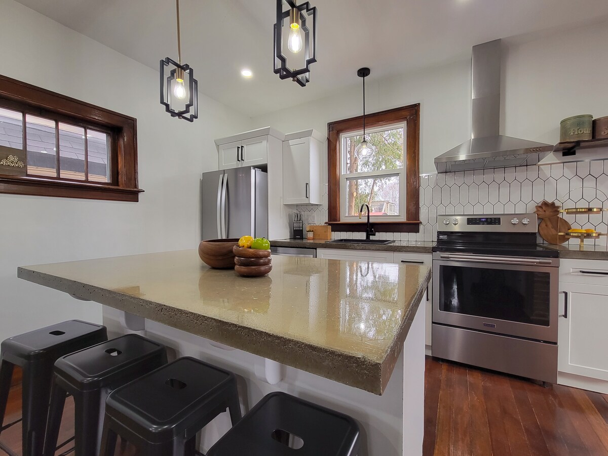 ¡Bienvenido a esta casa única e histórica de Chatham! Ha sido completamente renovado con un diseño moderno e industrial, mientras que las hermosas molduras y suelos de madera originales han sido restaurados. Esta casa está a pocos pasos del centro de la ciudad, por lo que si estás de vacaciones con la familia, aquí por negocios o simplemente de paso, estarás cerca de todo en esta joya céntrica.