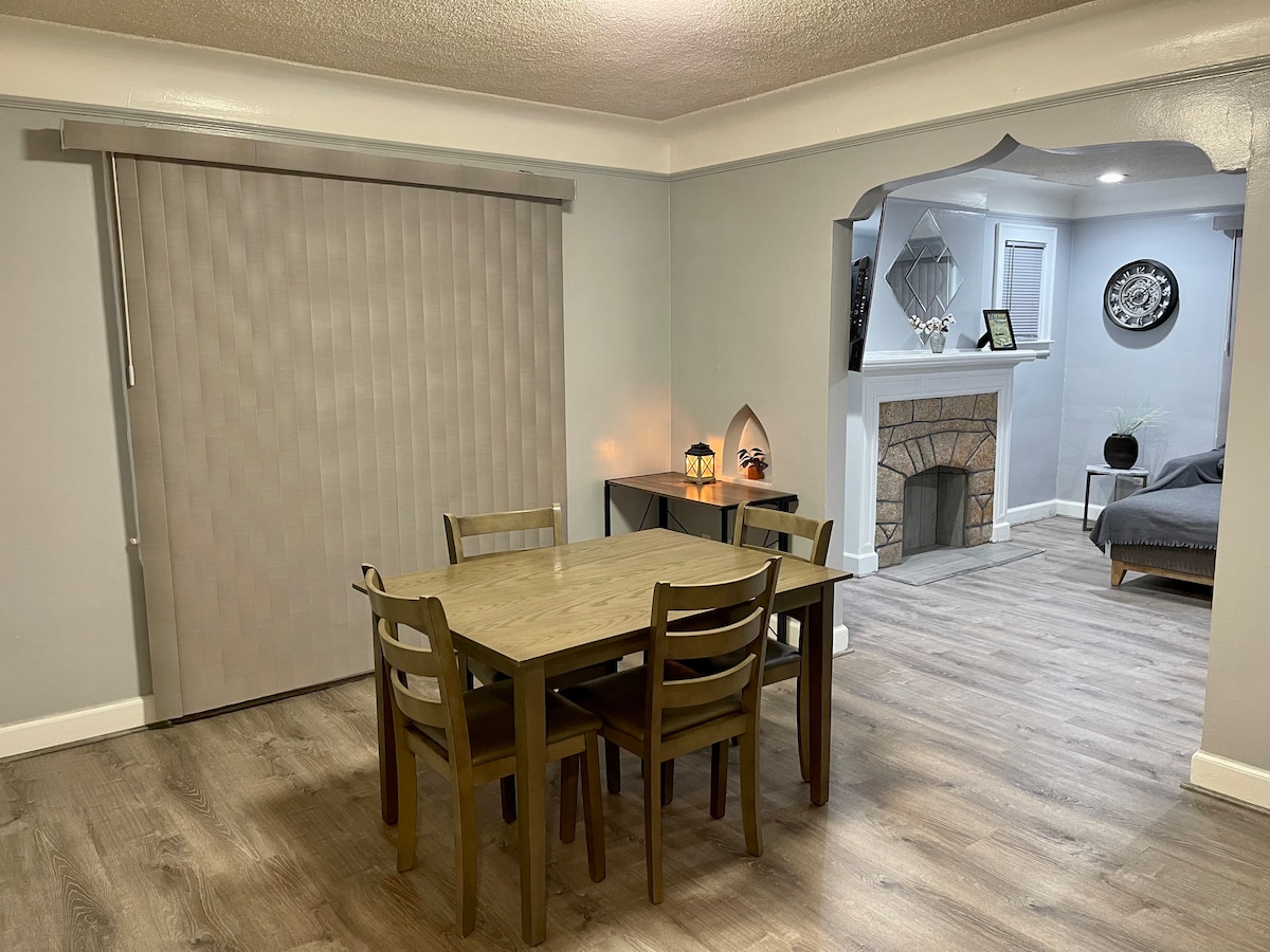 ¡Acogedor departamento en el sótano con 2 dormitorios y entrada privada! ¡Te damos la bienvenida a esta encantadora casa céntrica en un barrio seguro y tranquilo! Este departamento bien decorado es perfecto para parejas o familias de 4 personas, con 2 camas queen. Este departamento tiene un baño, una cocina bien equipada, una acogedora barra de café, comedor, TV para tu entretenimiento y un lavarropas y una secadora totalmente dedicados. Para tu información, el precio es reducido en comparación con un anuncio similar para reflejar que el techo puede ser bajo para los huéspedes altos.