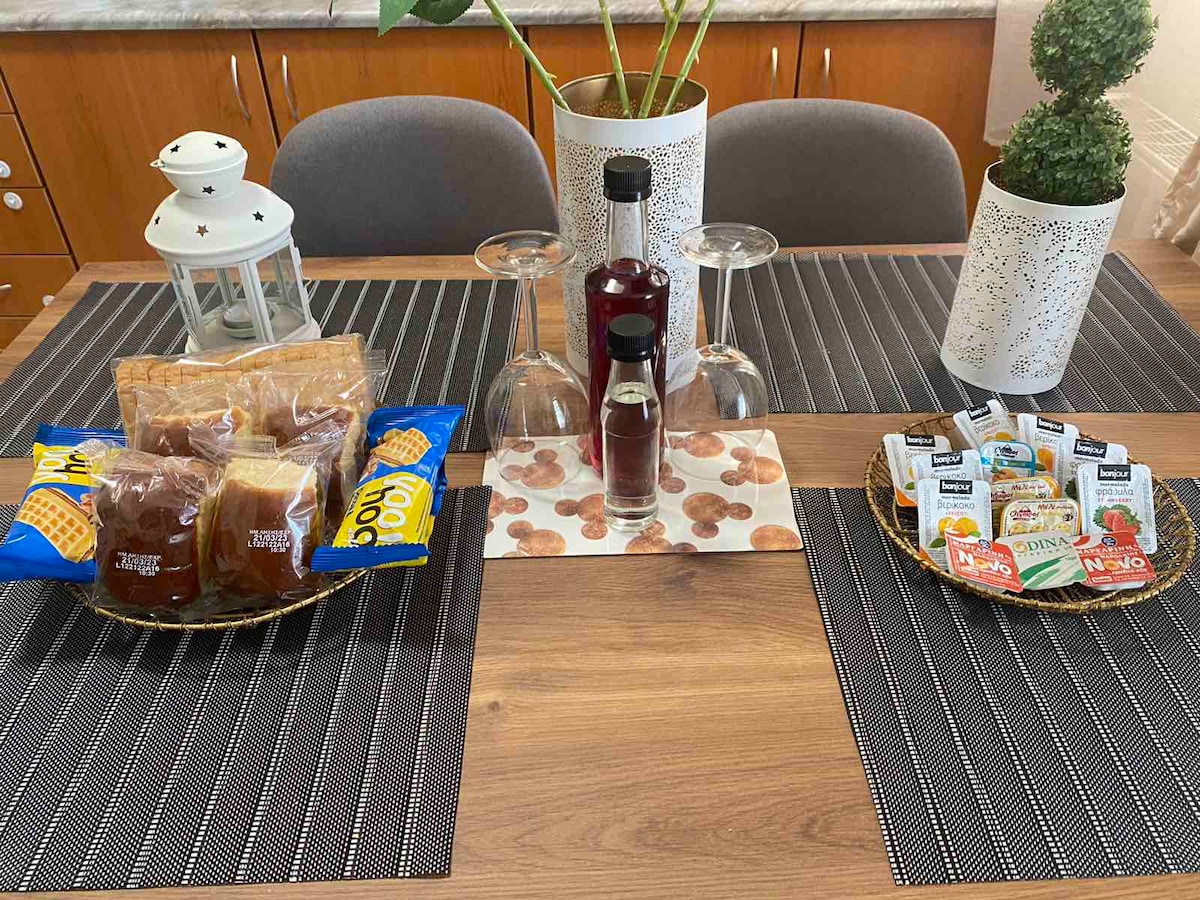 Queridos amigos, les doy la bienvenida al nuevo estudio que creé hace unos días y espero que mi alojamiento cumpla con sus requisitos. Un estudio hermoso, cálido y totalmente equipado está listo para ti. En un barrio tranquilo, en la zona de Epiro, a 5 minutos a pie del centro de la ciudad. A 100 metros encontrarás la famosa panadería "Sideris", así como un supermercado. La parada de autobús está a solo 200 metros. Hay muchos lugares de estacionamiento en el vecindario.