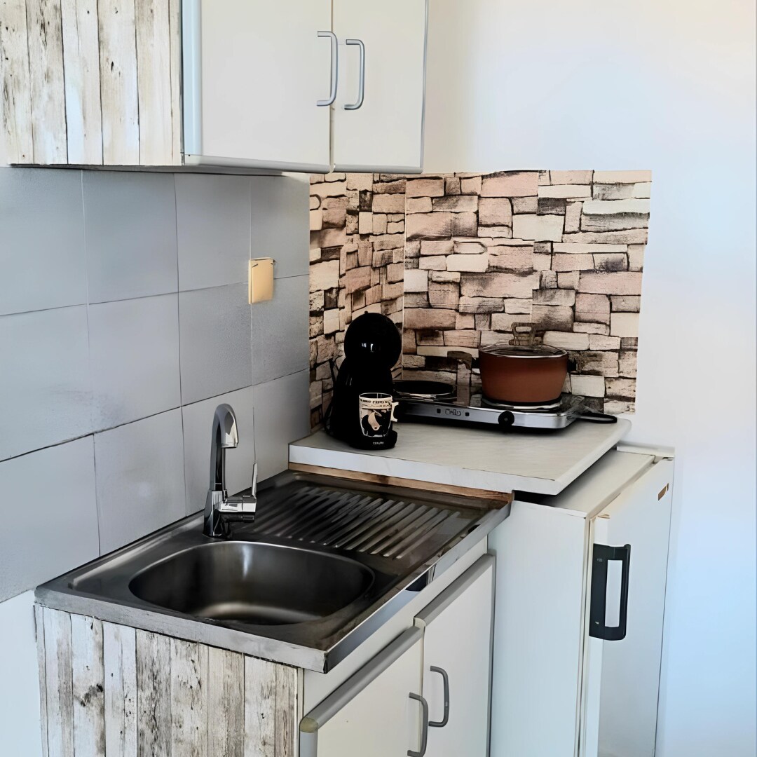 Very beautiful small and convenient studio next to the sea with its own bathroom and kitchen, in island style and color. Πολύ όμορφο μικρό και άνετο στούντιο δίπλα στη θάλασσα με δικό του μπάνιο και κουζίνα, σε νησιώτικο στυλ και χρώμα.