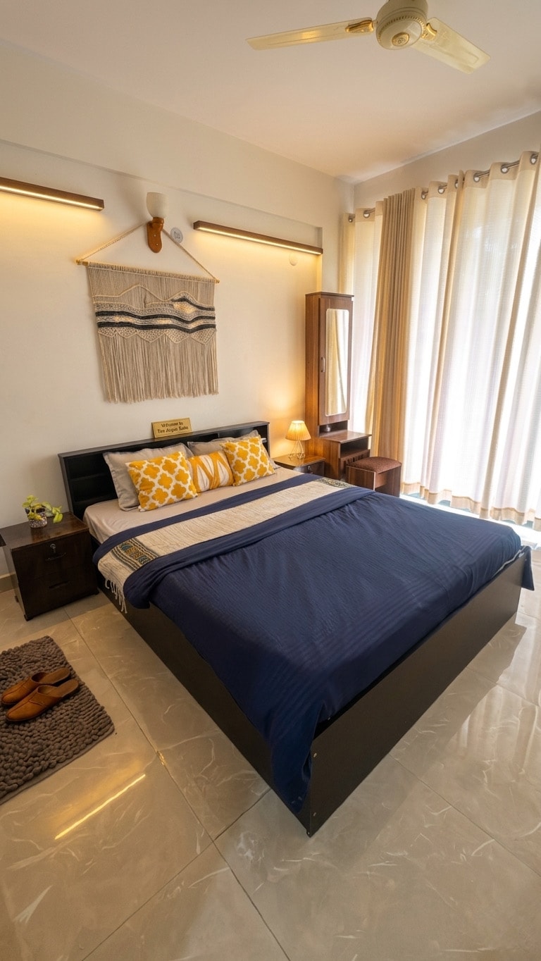 This Dehradun Mussorie home offers quiet premium and everyday comfort. A 2BHK concept with Dehradun-Mussorie valley view, kept it for Workation ready with mountain and Doon-valley view. Suggested stay in Dehradun-Mussorie Premium & thoughtfully curated furnishing layout create a space that feels both refined and welcoming. We dressed up this home in trendy way, ideal for guests who value privacy, comfort, simplicity and perfection. Designed in warm beige tones with a calm, minimal aesthetic.