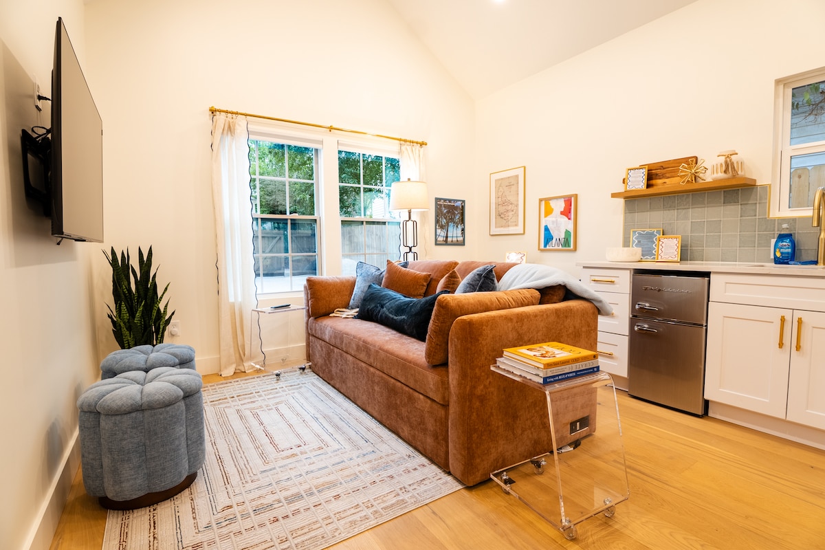 Bright and peaceful furnished studio above a quiet garage, perfect for remote work or a relaxing stay. A private spot filled with natural light and comfort. Enjoy off-street parking, a queen bed, full bathroom, fast Wi-Fi, Smart TV with soundbar, and a fully stocked kitchenette. Steps from parks, trails, Oakhurst Village, and Decatur Square—your cozy retreat in a friendly Atlanta neighborhood.