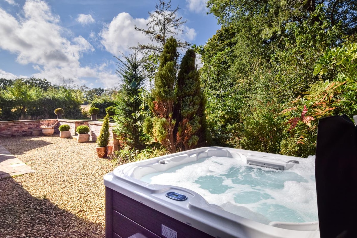 Jacuzzi de lujo calentado con leña en nuestra escapada a Cheshire
