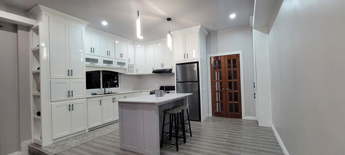 Bienvenido a «Un hogar lejos de casa», esta casa recién construida, acogedora, vibrante y moderna, ¡ubicada en el centro de Georgetown! Perfectamente situada a pocos minutos de supermercados, gasolineras, centros comerciales, taxis y otros servicios. Impresionante al entrar por la puerta, plano de planta de diseño de concepto abierto. Este alojamiento de 3 dormitorios independientes, consta de una suite queen, TV inteligente de 50 pulgadas, Alexa, agua fría y caliente y armarios. Esta casa incluye los últimos servicios. A 10 minutos del aeropuerto de Ogle y a 50 minutos en coche de CJIA.
