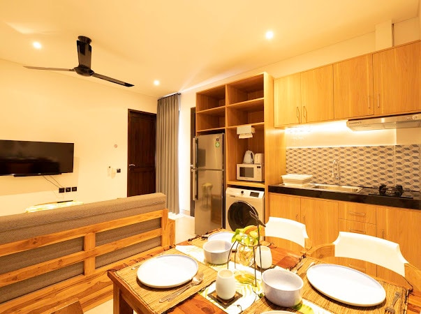 Esta unidad consta de 1 dormitorio, 1 sala de estar con cocina privada totalmente amueblada que incluye lavadora, nevera de 2 puertas, horno portátil 16L, microondas, licuadora, utensilios. Este lugar especial está cerca de todo, por lo que es fácil planificar tu visita, ya que Berawa es una de las áreas exageradas en el centro de Canggu, a pocos minutos en coche del Atlas o el club de playa finlandeses. Esta zona ofrece cientos de restaurantes exclusivos listos para estropear tu gusto o lugar para ir de fiesta o disfrutar de buena música por la tarde.