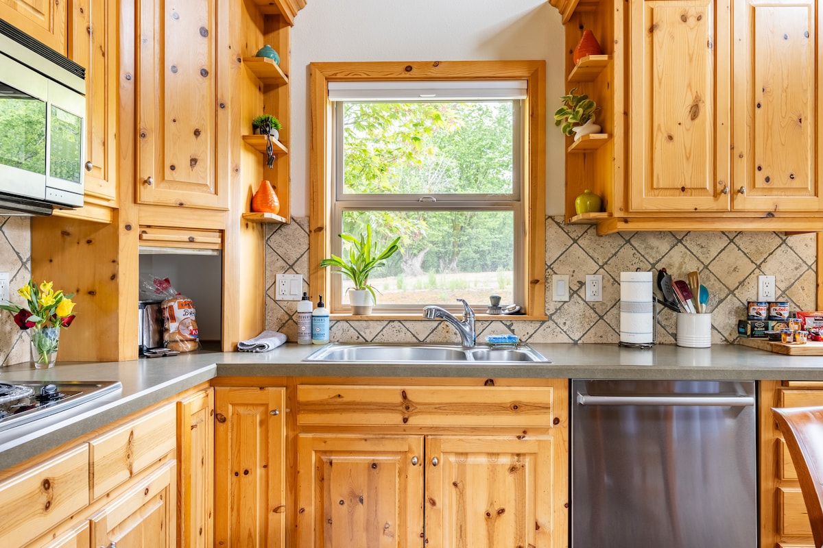 ¡La suite Treehouse Guest está enclavada en los árboles de la hermosa comunidad de Tumalo, Oregón! Tumalo, a 10 minutos en coche al oeste de Bend, es famosa por su belleza, que incluye un fácil acceso a rutas de senderismo y ciclismo. Tu suite de invitados de estilo artesanal de dos pisos está rodeada de árboles e incluye entrada privada, garaje y terraza. Nuestra granja tiene vistas panorámicas a las montañas Cascade. Durante el verano, los huéspedes pueden disfrutar de nuestro jardín inglés, estanque y alpacas en el campo.