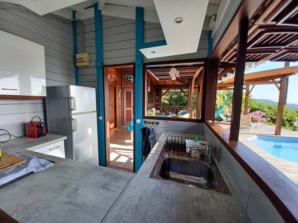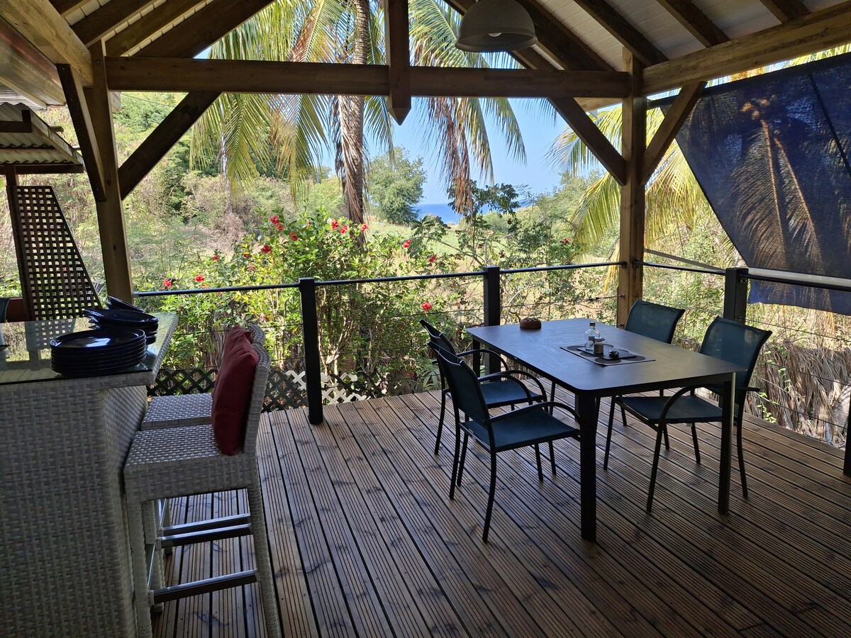 Bungalow de madera con vistas al mar, enclavado en una zona verde, entre el bosque tropical y el mar Caribe. Situado a pocos minutos de 3 hermosas playas, consta de un jardín privado, aparcamiento, terraza, salón cocina (con TV y wifi) y arriba, un dormitorio principal con aire acondicionado, (cama de 160), con baño. A su llegada, podrá disfrutar de su plantador de bienvenida frente al mar, antes de salir a visitar nuestra increíble isla... Hasta pronto en el paraíso...