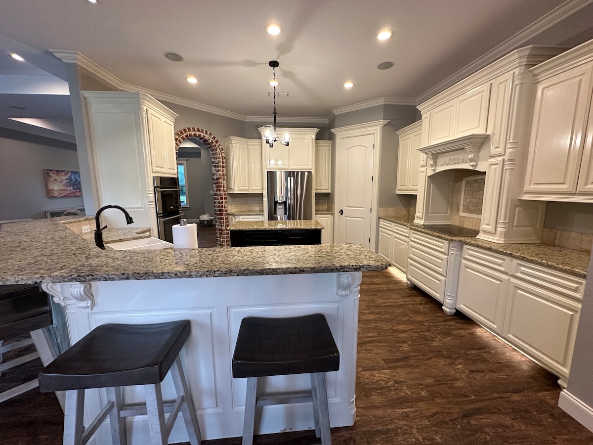 Forget your worries in this spacious and serene contemporary farmhouse complete with its own private pond. Escape the city to our peaceful cozy getaway. While y’all are here, enjoy the luxurious king bed, oversized spa-like shower and gather around the open and inviting family-style kitchen. Whether you’re relaxing in the hot tub listening to the sounds of nature or roasting s’mores by the fire pit you’re sure to enjoy the experiences this property has to offer!