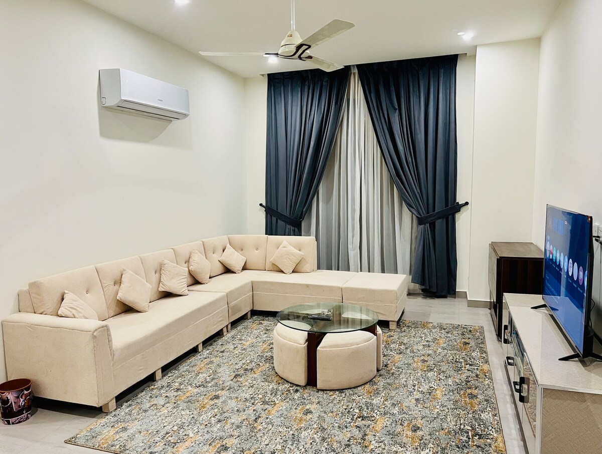 Unwind and indulge in a luxury retreat offered by ComfyCozy. This modern villa is located in a lush green Bahria Enclave Islamabad . While much of the entertainment can be found within Bahria Enclave, (Birds Aviary/ Zoo) you’re just a 10 minute drive from dancing fountains @ Park View Society, the vibrant Food Valley and Rawal lake adding even more excitement to your stay. Grocery is delivered at the doorstep adding convenience. You can also get access to GYM on special discounted rates