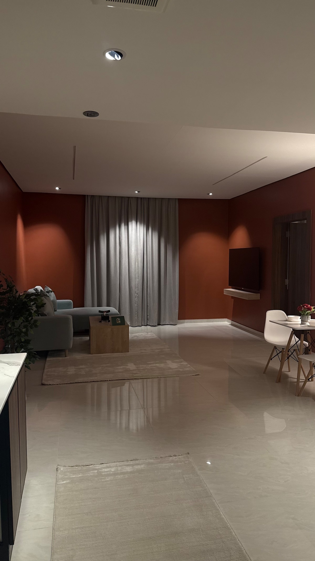 Disfrutá de una estadía de lujo en este estudio nuevo y moderno, con un diseño que combina comodidad y lujo. Cuenta con una cama muy cómoda que garantiza un sueño profundo y un televisor inteligente de 65 pulgadas de los últimos modelos para una experiencia de entretenimiento distintiva. Para los amantes del café, hay una máquina Nespresso disponible para preparar su café favorito en cualquier momento. También tiene un cómodo sofá para momentos tranquilos y agradables. El estudio se encuentra en el exclusivo barrio Olaya de Al Khobar, cerca de restaurantes, cafés y centros comerciales, por lo que es una opción ideal para los visitantes que buscan comodidad y una ubicación distintiva