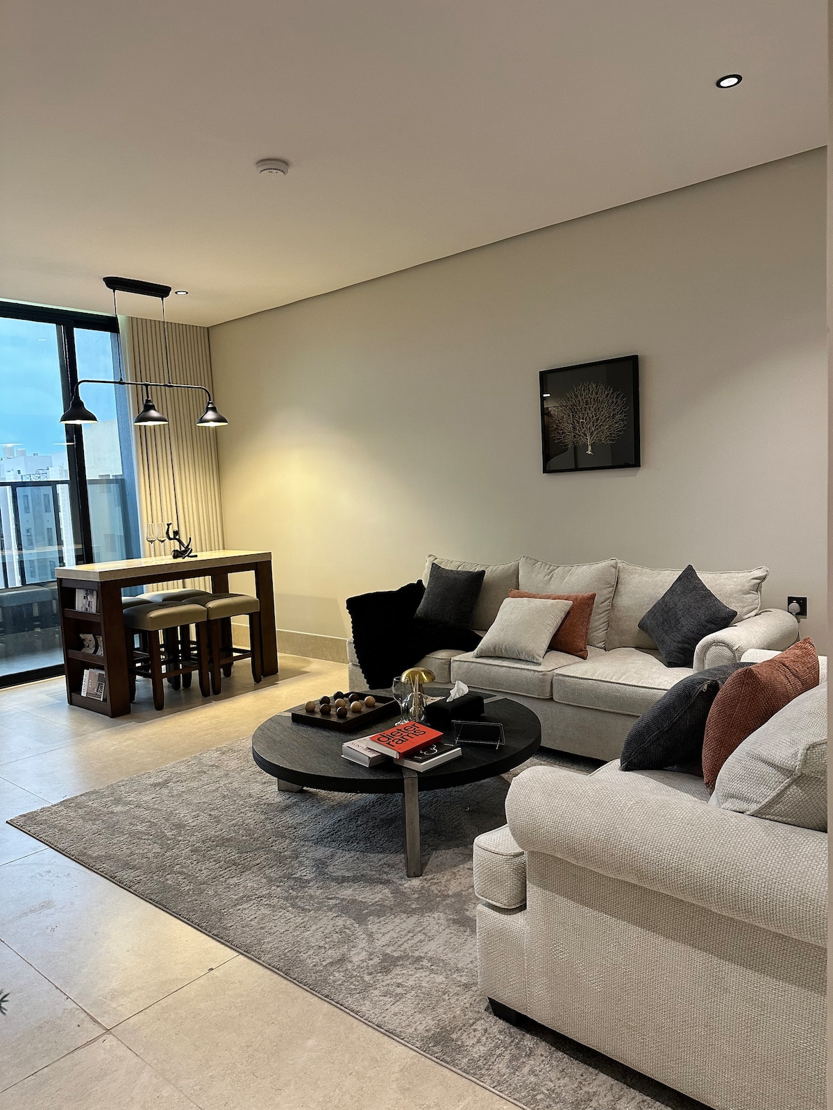 ¡Te damos la bienvenida a tu refugio junto al lago! Este departamento de dos dormitorios, con un diseño hermoso, ofrece la combinación perfecta de comodidad, estilo y tranquilidad. Ubicado a pocos pasos del agua, vas a disfrutar de vistas panorámicas al lago desde el balcón privado, el lugar ideal para el café de la mañana o las puestas de sol de la noche. Es un hogar tranquilo o una puerta de entrada elegante. El apartamento se encuentra en: A 3 minutos de la autopista King Fahd Causeway A 10 minutos de Ajdan Walk A 10 minutos de la costa de Khobar A 34 minutos del aeropuerto