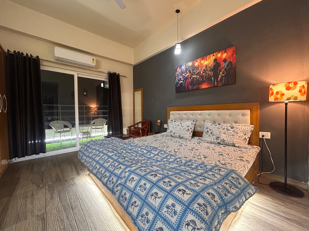 The first 2 Bhk Apartment that meets every requirements ✨ - 2 Bedrooms ( Master bedroom, second bedroom) - 2 King Sized Beds - A spacious living area with a comfortable seating arrangement - 2 bathrooms ( 1 in each of the bedrooms) - Kitchenette (with all cooking basics available and amenities stocked up, it is the perfect place to prepare your favourite meals) - A Shared Balcony area connecting with the apartment which can be the perfect space for your evening strolls Book Now!!