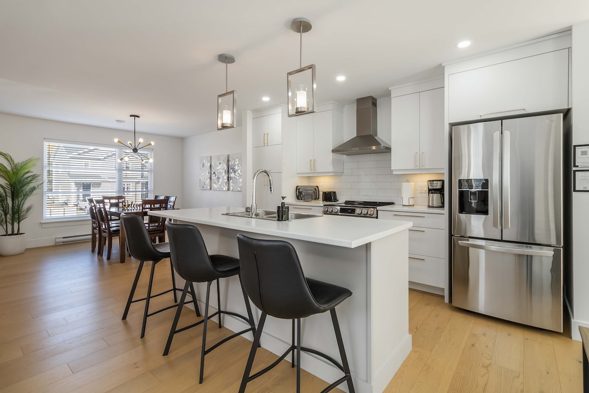 This beautiful and modern brand new residence located in the community of Dieppe is comfortable and perfect for couples, families, group trips/ individual get away from out of town and in town. With: Breath taking and spacious patio with a 240V private HOT TUB (5 seat), modern kitchen, indoor fire place and huge driveway for parking. 3 min drive to Tim hortons, Dollarama, COOP, and Mac-Donald and several gas stations. 3 mins drive from the airport