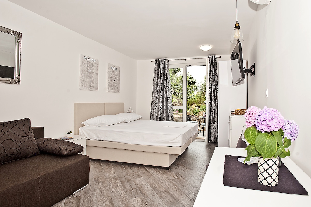 El apartamento Klara está situado en un vecindario hermoso y tranquilo, a unos 20 minutos a pie del casco antiguo y a 300 metros de dos playas. La parada de autobús y el supermercado están a 50 metros del apartamento. El apartamento es completamente nuevo con entrada independiente. Hay aire acondicionado, wifi y TV . La cocina está equipada con todo lo necesario. Está ubicado en la planta baja y tiene una pequeña terraza donde puedes disfrutar en las noches tranquilas.