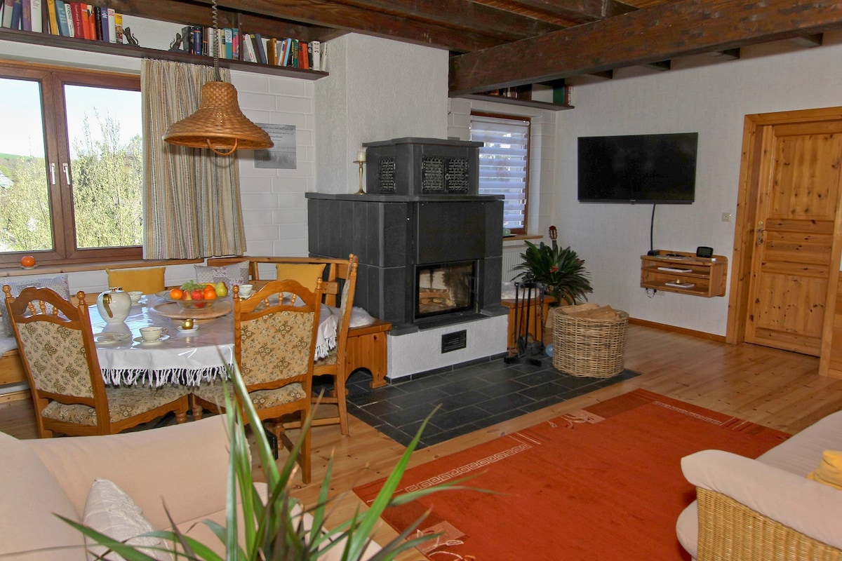 Nuestra casa de madera (en las afueras) ofrece paz y relajación en 110 m². Las terrazas, un gran balcón y un hermoso jardín te garantizan horas de relajación. Desde aquí podés empezar a hacer senderismo, andar en bicicleta y hacer recorridos turísticos. El Hunsrück ofrece un sinfín de hermosos destinos de excursiones. Mosel y el Rin están muy cerca. Trier, Mainz, Coblenz, Cochem, así como la ciudad alemana de Idar-Oberstein, por nombrar algunos ejemplos, también están en los alrededores.