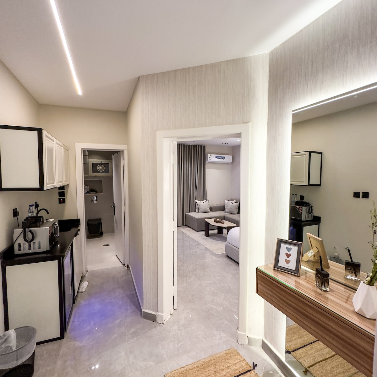 Luxury studio with Self-Entry consisting of a bedroom, kitchen, and a fully equipped bathroom (shampoo, slippers, one-time use towels, tissues). • Besides Boulevard in Hittin, North Riyadh… The location is ideal, close to major events such as Riyadh Season, Diriyah Season, and all essential services like restaurants and shopping. Specifically: -Boulevard City 6 minute walking -Boulevard World 7 minutes walking -Arena Stadium 9 minutes walking