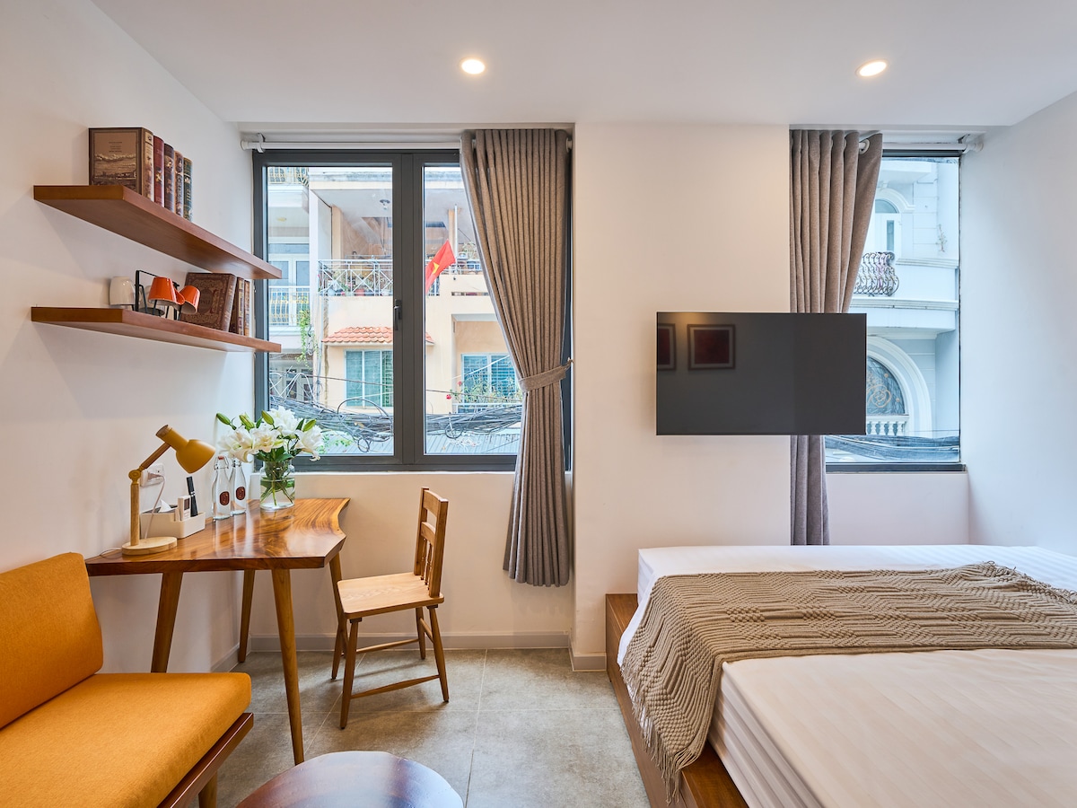 Bienvenido a nuestro nuevo estudio que combina lujo y estilo tradicional. - Estudio nuevo, luminoso y limpio. - Situado en el corazón de Ho Chi Minh, y debido a que está en el 4º piso con ascensor, es tranquilo tanto de día como de noche. - Tener una vista impresionante desde el balcón, dejando entrar más aire y luz en la habitación. - Se parecía a las fotos. Lleno de servicios necesarios, excepcional por proyector - Llegada flexible 24/7, fácil de encontrar, fácil de entrar con instrucciones claras. - Wifi de alta velocidad, totalmente climatizado