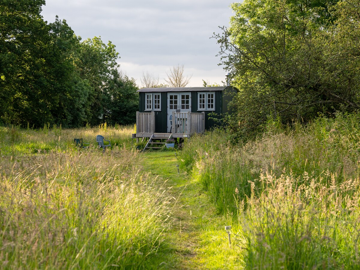 The Green Hut es una escapada acogedora pero lujosa en el paraíso de los excursionistas de Batcombe, situado justo detrás de nuestro granero convertido en un prado arbolado. Esta cabaña de pastor independiente es perfecta para que una o dos personas se sumerjan en una verdadera relajación rural, a la vez que están cerca de las hermosas ciudades comerciales de Frome y Bruton. Ya sea sentado afuera disfrutando de las vistas bajo el sol o acurrucado junto a la estufa de leña en un día lluvioso, The Green Hut es el lugar ideal para relajarse.