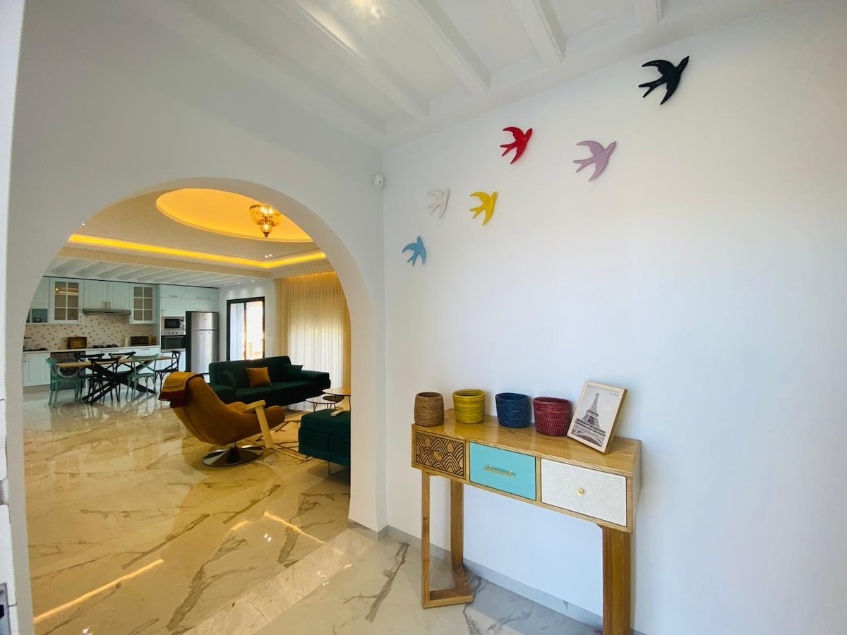 Profitez d’une villa entière que pour vous 3 chambres dont deux suite parentale une villa paisible et calme. 2 minutes à pied du centre commercial géant bourgo mall, taxi, toute commodité et 8 minutes en voiture de la plage Sidi yati facile pour les déplacements pour de belle vacances