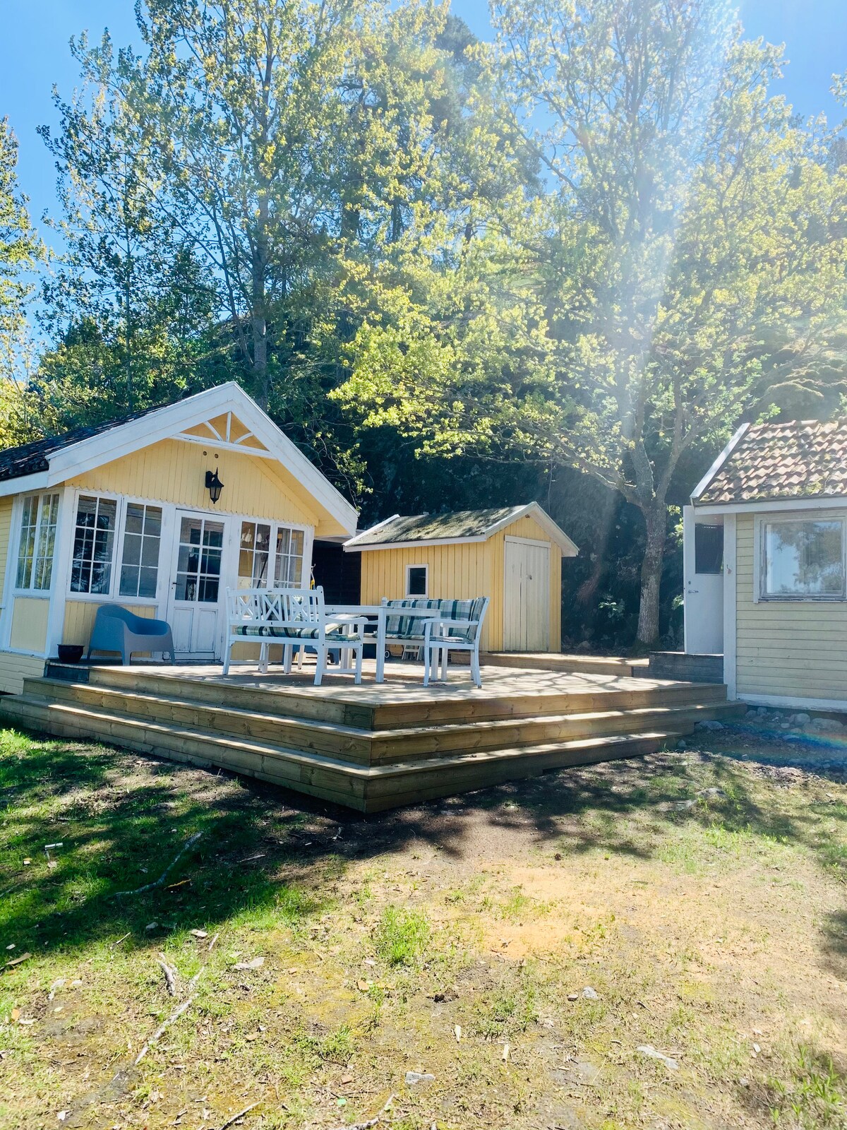 Casa de campo de nueva construcción de 30 metros cuadrados. A 5 minutos a pie del puerto. - Cocina y living en un mismo espacio abierto. - Loft para dormir con 2 camas individuales. - La sala de estar tiene un sofá cama. - La cocina tiene una placa de inducción y un horno. - Baño totalmente revestido de azulejos con inodoro, ducha y lavadora. - Amplia terraza alrededor de la casa con comedor. - La vista consiste en un bosque de pinos y arándanos. - La limpieza NO está incluida. - NO se admiten mascotas. - Los huéspedes traen su propia ropa de cama y toallas (se pueden alquilar por 150 SEK por persona)