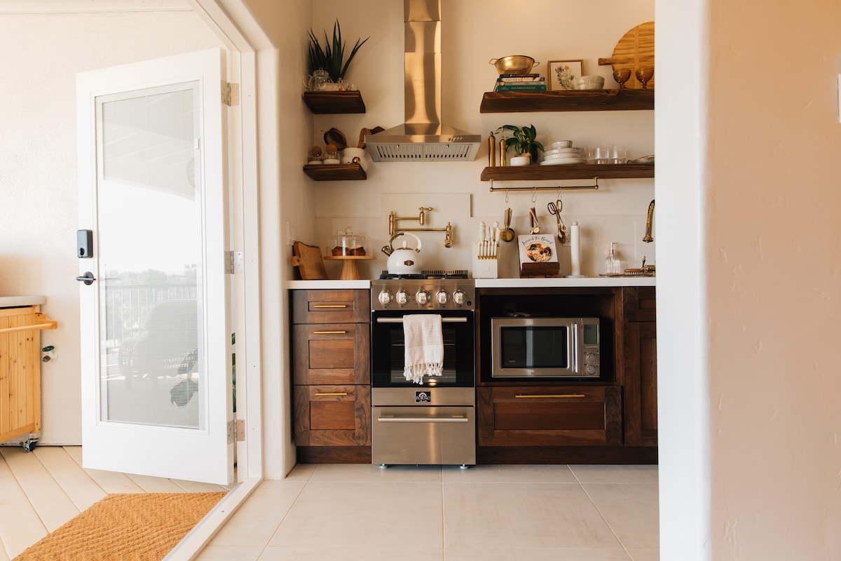 Quédate en nuestra suite de artistas en las estribaciones de la Sierra. El espacio cuenta con una suite de invitados de dos habitaciones, baño completo, zona de cocina y patio abierto a un prado de roble. El dormitorio tiene una cómoda cama de espuma viscoelástica tamaño queen y una vista de la cascada y el jardín. Ven a disfrutar de la tranquila tranquilidad del campo y escucha la cascada y el susurro de las palmeras. ¡Seguro que tendrás una noche tranquila después de un día de aventuras! La carga de vehículos eléctricos de nivel 2 está disponible a solicitud por una tarifa adicional.