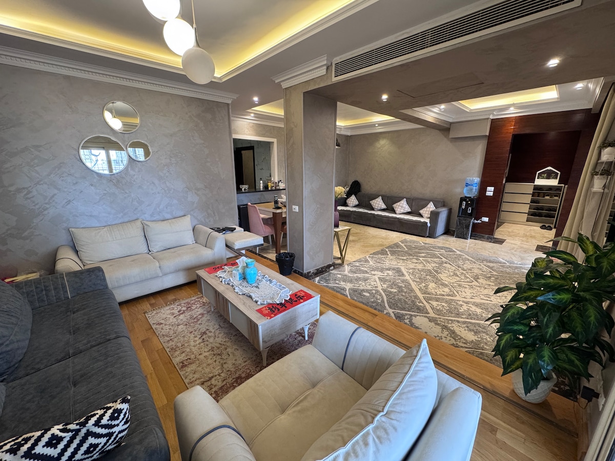 - Este lugar único tiene un estilo / Departamento con servicios ultramodernizado. - No se permiten géneros mixtos ilegalmente. - Pareja de matrimonio consuetudinario está bien - Rampa en la entrada del edificio para sillas de ruedas y equipaje. - Supermercado Seoudi; todo tipo de queso de primera calidad (queso blando y duro) del supermercado Seoudi (al lado del edificio del departamento) - Lavandería, peluquero, barbería, mezquita , canto. - Paquete “Ultimate” de BeIN/Shahid VIP SSC