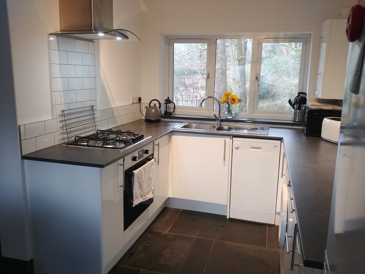 Relájate en el jacuzzi con una copa de vino y disfruta del impresionante paisaje y la tranquilidad del Parque Nacional de Snowdonia. o acurrúcate en los sofás de cuero frente a un fuego crepitante. Disfruta cocinando un banquete en la elegante y moderna cocina o simplemente túmbate en nuestras suntuosas camas tamaño king. Dos de los dormitorios se pueden cambiar de 1 cama tamaño súper king a 2 camas individuales, solo tienes que decirnos cómo lo quieres.