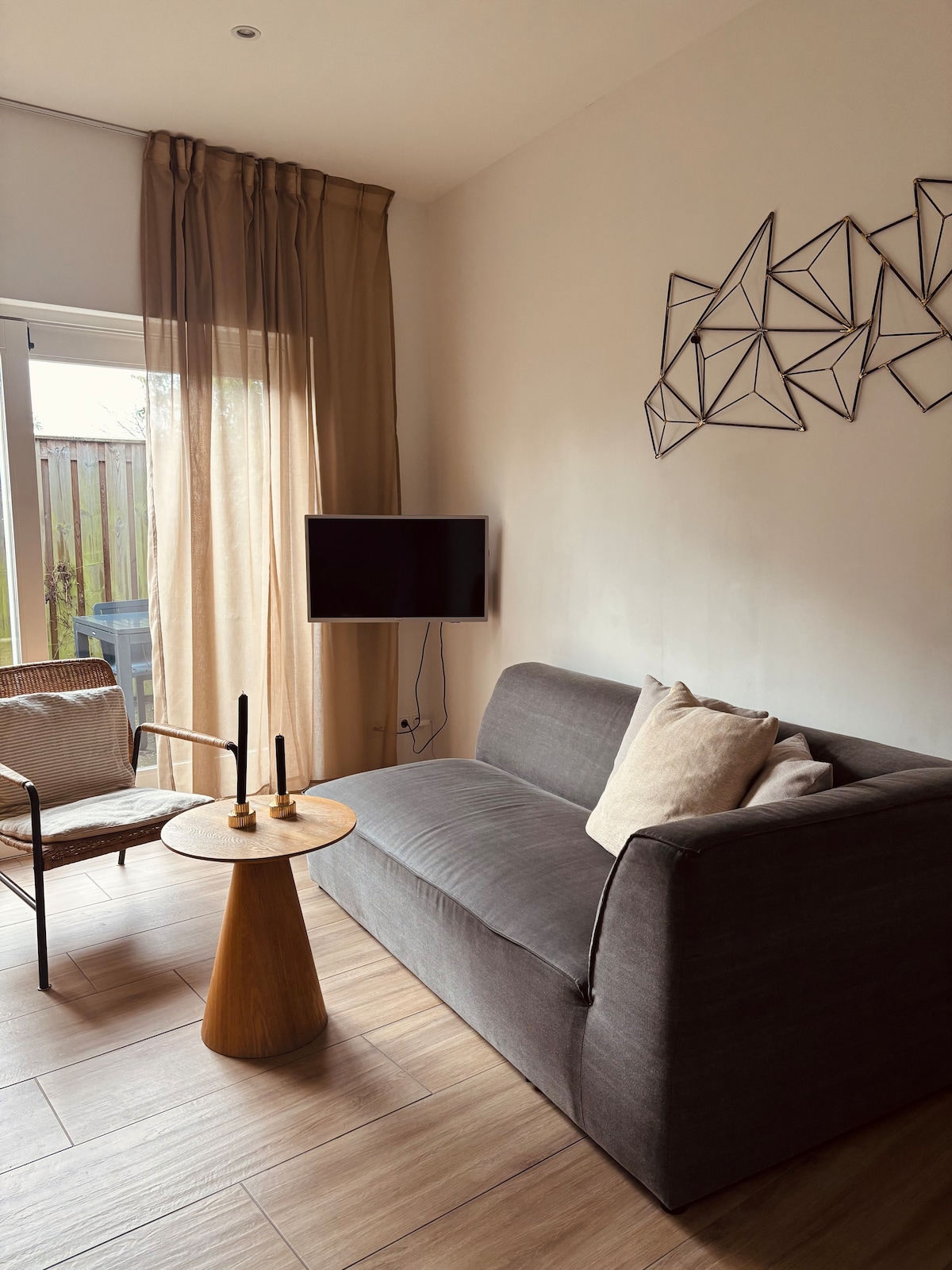 Comedor compacto con buen gusto, sala de estar con hermosas vistas. Una zona de cocina con placa de inducción de nevera Nespresso y microondas. Ingredientes básicos (vinagre de aceite de sal de pimienta de café y té). Inodoro privado. En las puertas traseras de la terraza (también entrada) jardín privado (en SW) porche y 2ª terraza (mesa de comedor, 2 tumbonas y barbacoa de gas). Desde la escalera de la sala de estar hasta el suelo con un luminoso y lujoso dormitorio con cama tamaño king, ducha y lavabo doble. ¡Muy tranquilo y a 1,5 km de Domburg y la playa!