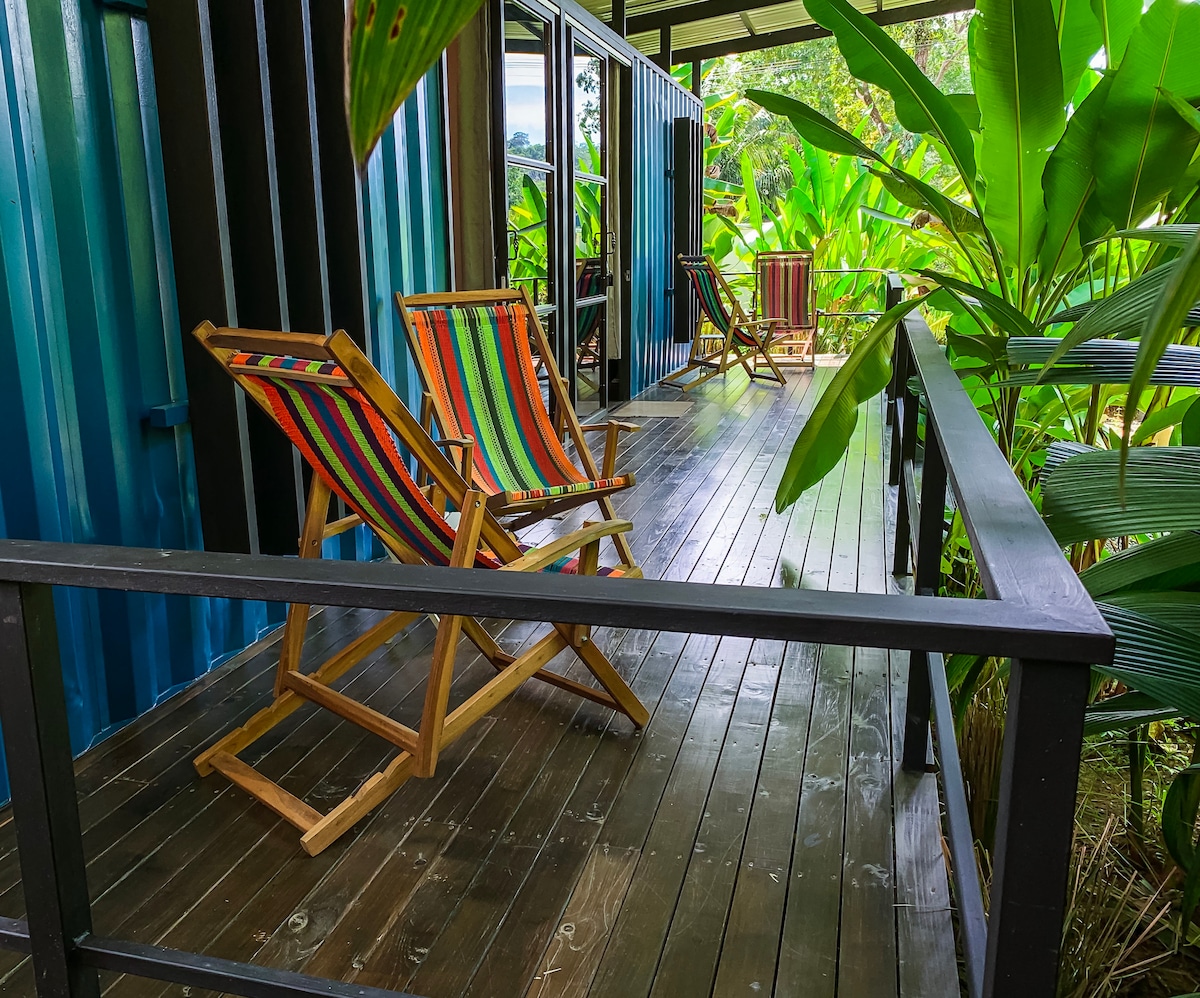Playa Matapalo; a pasos de la playa! Nuestras lujosas suites ofrecen una impresionante vista panorámica del exuberante jardín, donde podrá avistar monos, guacamayos, tucanes y perezosos desde su hamaca. Cada suite cuenta con un amplio patio amueblado con cómodos sillones, perfecto para relajarse al aire libre. Diseñadas con esmero, las suites incluyen todo lo necesario para una estancia relajante: una gran cama king size, aire acondicionado, mininevera y un baño de gran tamaño.