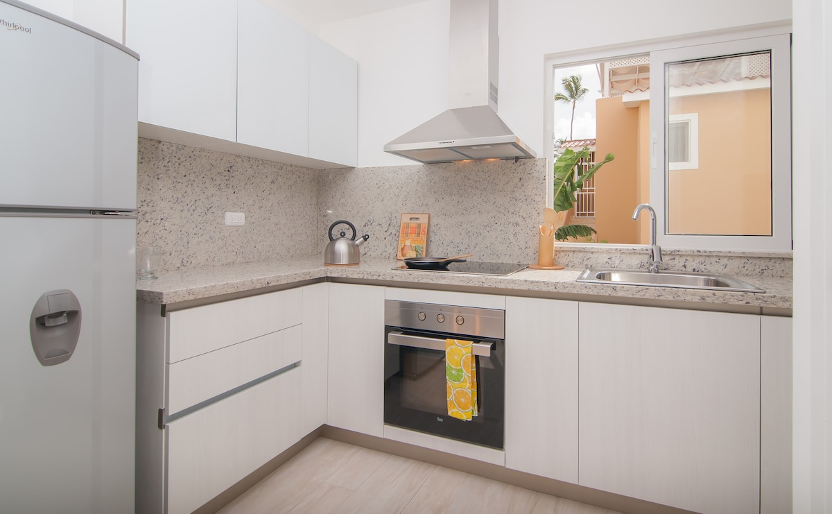 Este Lumina es perfecto para una pareja, un viajero en solitario o amigos cercanos que viajan juntos. La piscina en el área común es una gran ventaja para refrescarse en el fuerte calor de Punta Cana. * Llegada sin contacto * Seguridad las 24 horas. * Atención al cliente 24/7, 24 horas, 7 * Wifi rápido * 1 dormitorio + 1,5 baños * Cocina totalmente equipada * Ropa de cama cómoda * Máquina de café * Servicios del baño * Estacionamiento gratuito