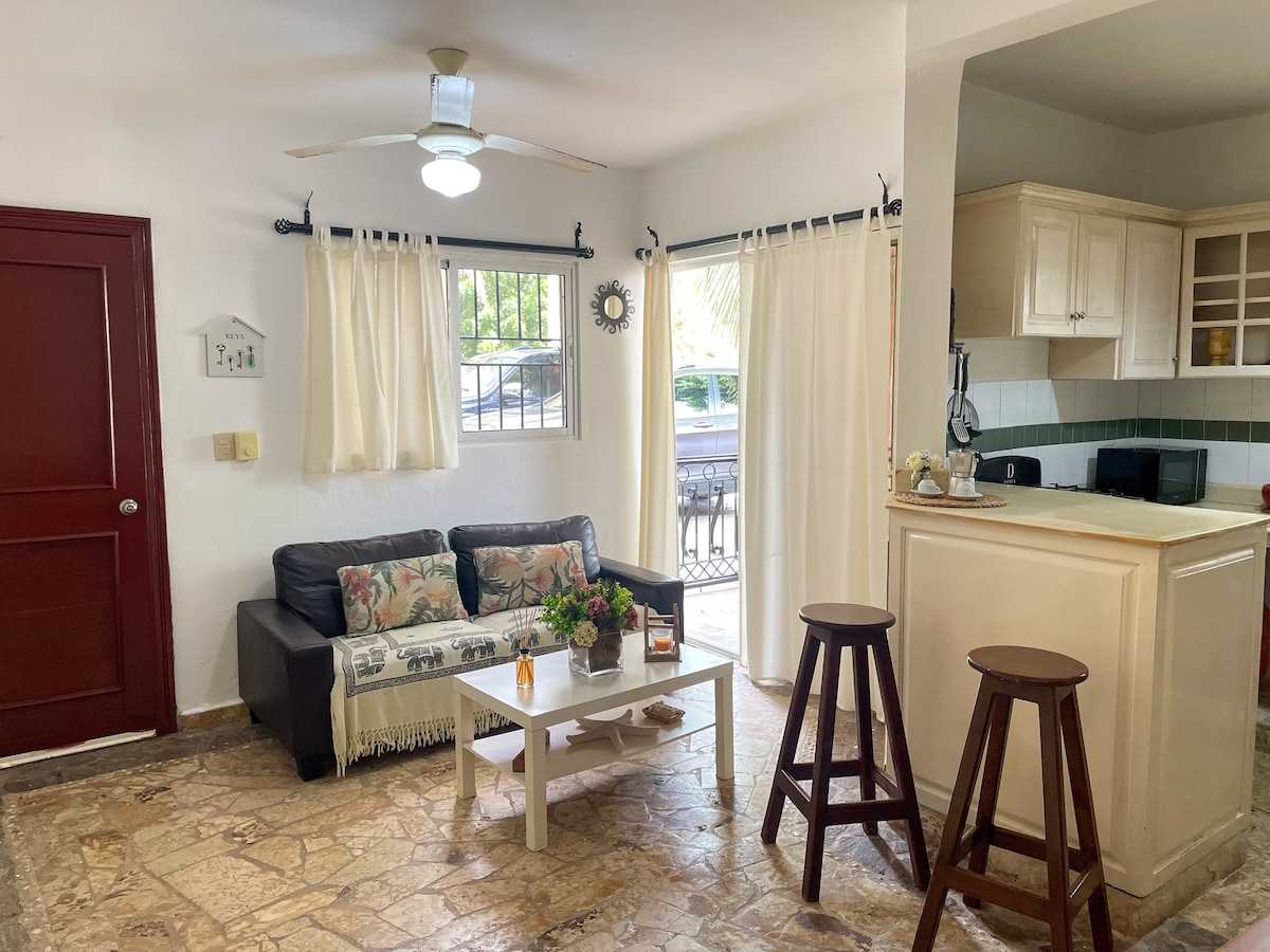 Experience a serene yet vibrant getaway in our stylish apartment. Just minutes from lively bars, delicious restaurants, and the bustling town center. The stunning beach is only a 5-minute stroll away.🏝☀️ Unwind on our cozy terrace, perfect for sipping cocktails in tranquility.🍹 😎 Explore Bayahibe's exciting excursions and breathtaking beaches with ease 🏖️ Don't miss out on the Caribbean's best. Book your dream vacation today!