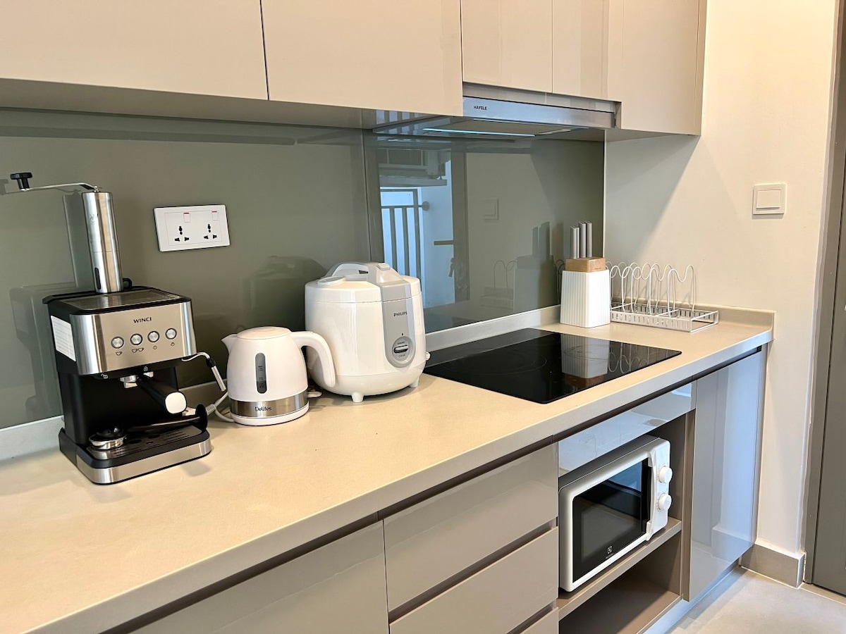 Descubrí un refugio privado de lujo en el corazón de la ciudad. A solo 3 minutos de Rach Chiec MRT, esta casa inteligente de 45 m² ofrece privacidad, comodidad y estilo. Disfrutá de servicios de alta gama: iluminación controlada por app, televisores 4K de 85” y 55” con Netflix y Apple TV, sonido envolvente Apple HomePod, iluminación ambiental personalizable y una bañera de inmersión estilo spa de 2 metros. Ideal para parejas, viajeros de negocios y familias pequeñas.