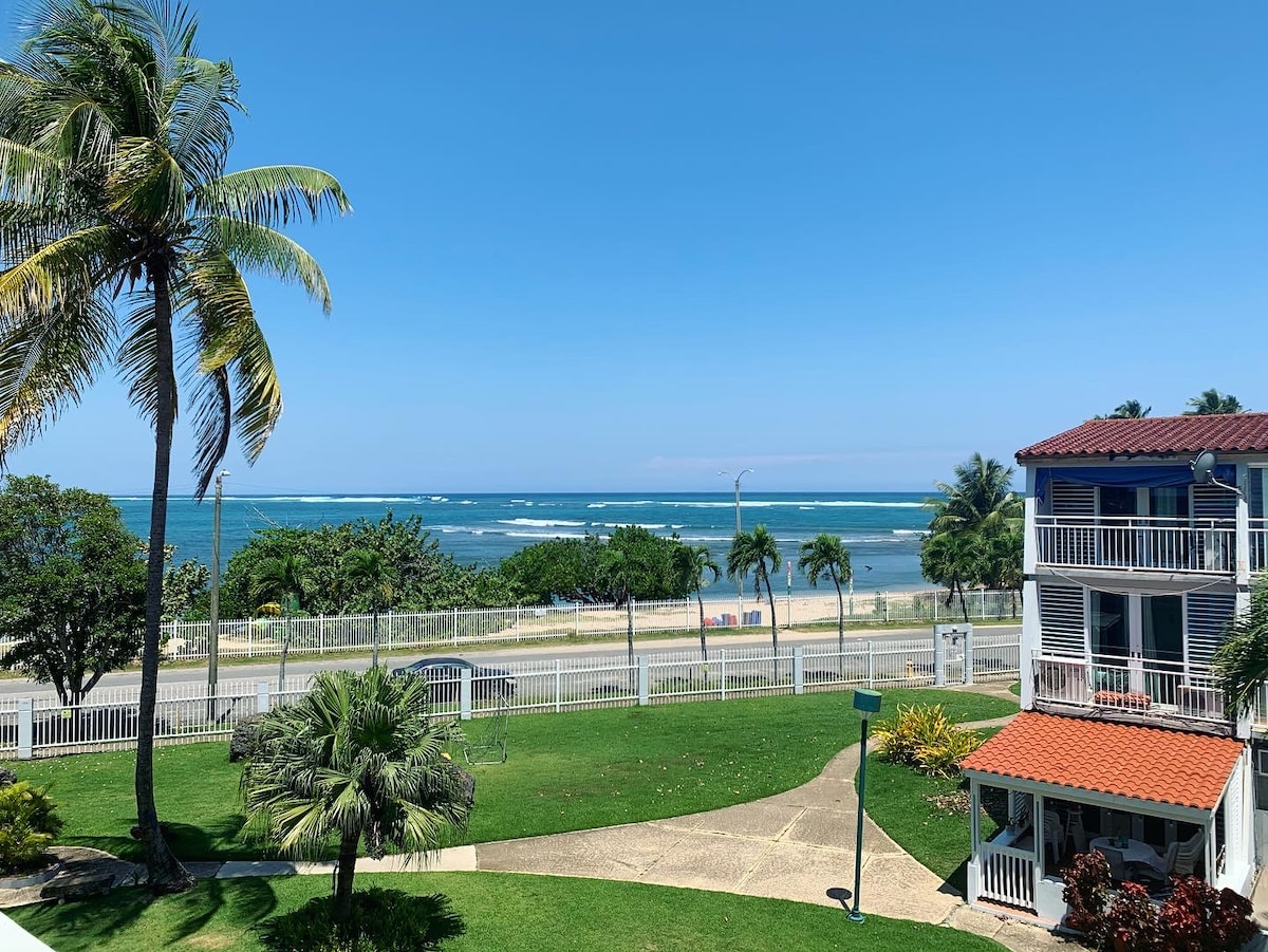 Puedes sentirte en una cueva tranquila frente al mar. Siente el rocio del mar, disfruta de la vista y la brisa marina desde tu habitacion o solo camina unos paso y estaras en una playa tranquila pero a su vez cerca de restaurantes , supermercados y mas. La playa es mayormente de surfistas ,puedes mojarte en charcas en la orilla si no erers de los que les gusta el surf. Hay area de palmas y grama donde puedes pasar rato disfrutando de la vista.