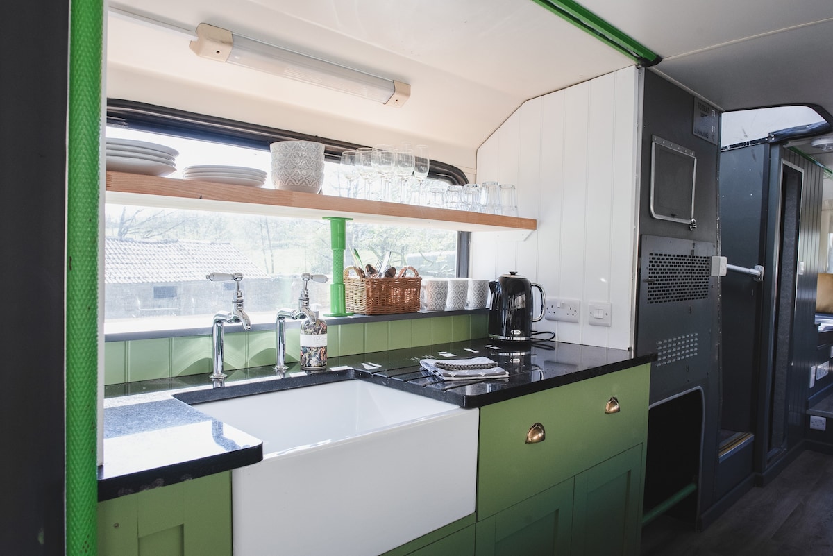 «Rex the Bus» es único, divertido y un poco peculiar. Este autobús de dos pisos se ha convertido al más alto nivel y se ha conectado a la red eléctrica, al agua y al desagüe. Disfruta de vistas panorámicas al campo desde las ventanas, contempla el amanecer desde tu cama doble o litera. La calefacción y una estufa de leña te mantendrán caliente y acogedor, mientras que la zona de cocina ofrece mucho espacio para preparar una deliciosa comida. Hay una ducha en la planta baja y un inodoro y un lavabo en la planta superior.