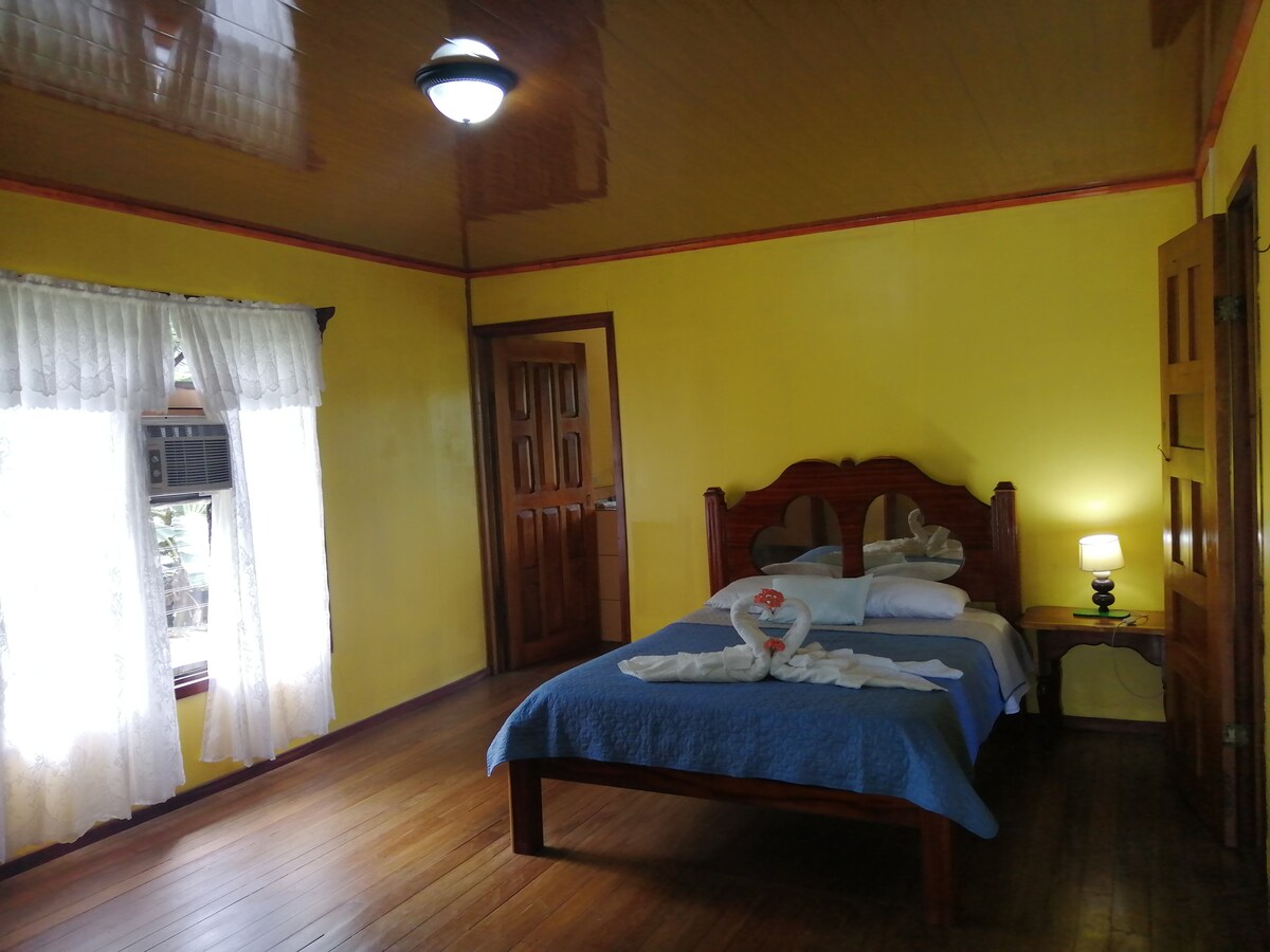 Enjoy this spacious- private Villa! located just minutes away from the amazing Golfo Dulce, heritage site for whales & dolphins. With its open concept, built right next to a garden lake; it is a perfect setting to relax and enjoy nature. Fruit trees and ornamentals attract birds, butterflies and monkeys. The large bedroom offers 2 queen size beds, A/C, a balcony, and an open concept bathroom. Brand new construction/ Gated with parking lot.