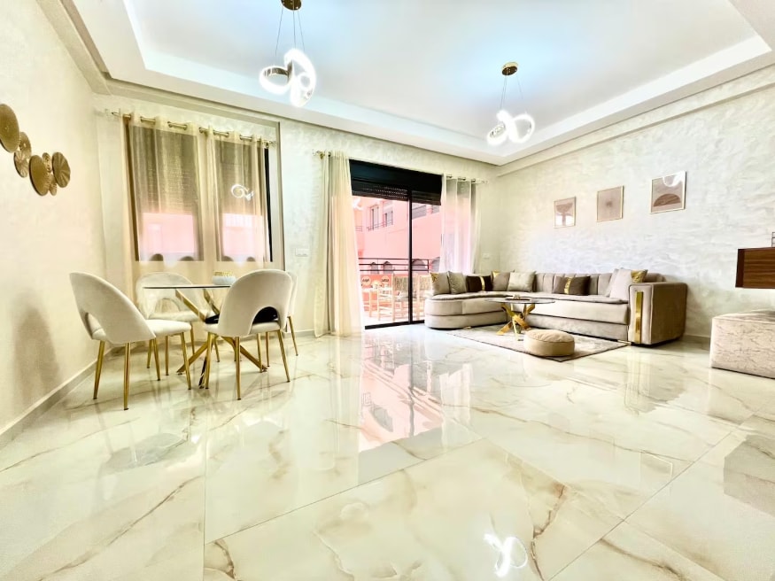 el apartamento Nihali, moderno y tranquilo, situado en el corazón de Guéliz. Disfrute de una ubicación ideal, cerca de restaurantes, cafés, tiendas y a pocos minutos de la medina y la plaza Jamaâ El Fna. Aire acondicionado, Internet de alta velocidad (fibra óptica) IPTV/Netflix, cocina equipada y balcón agradable: todo está reunido para una estadía cómoda, ya sea en pareja, en familia o en viaje de negocios.